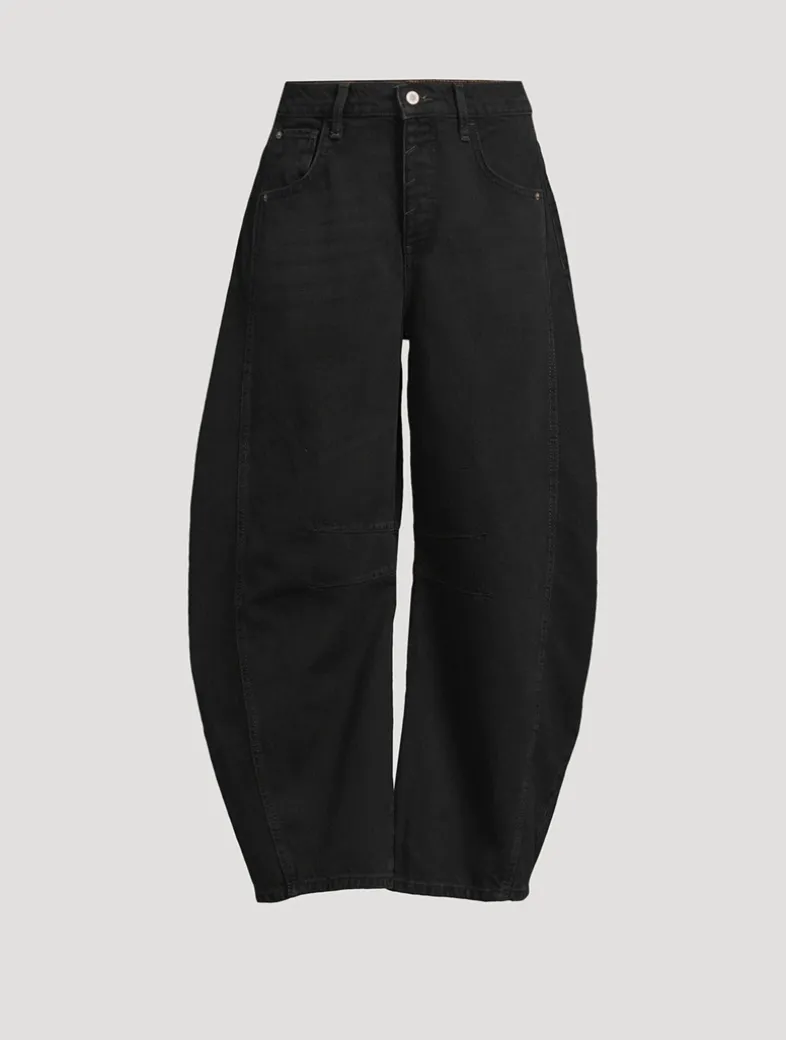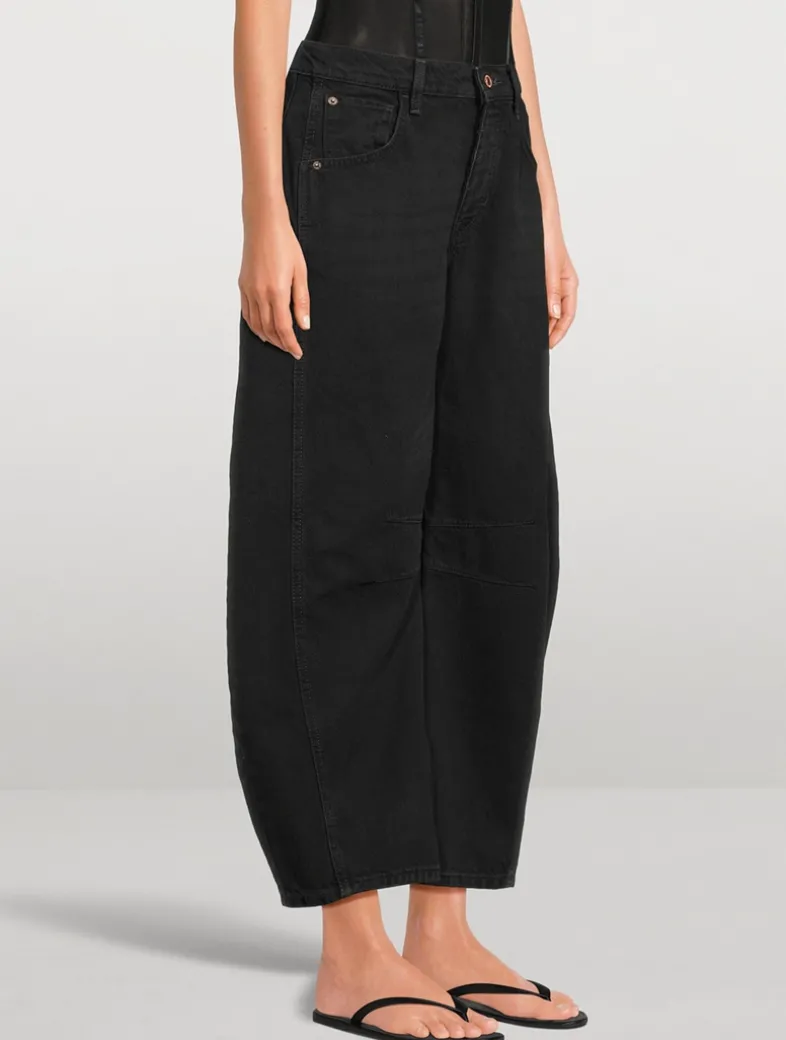 These bold barrel jeans from the We The Free collection are featured in a mid-rise fit with subtle distressed detailing and wide legs that taper at the ankle. Crafted from a rigid denim fabrication, they have a four-pocket design and seam detailing throughout. Certified to the Global Recycling Standard (GRS).