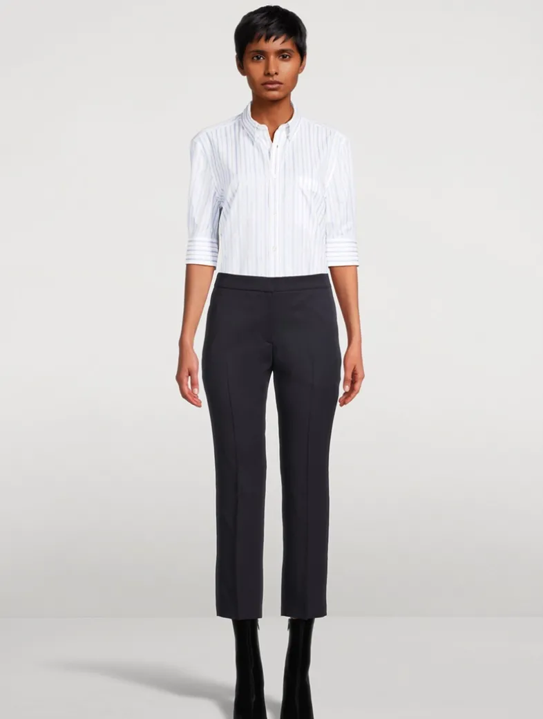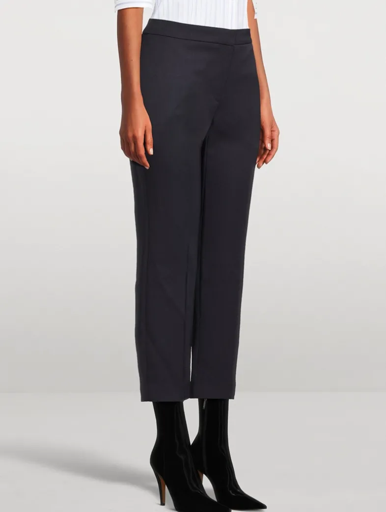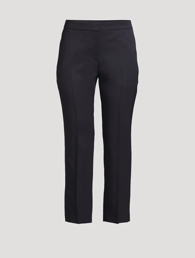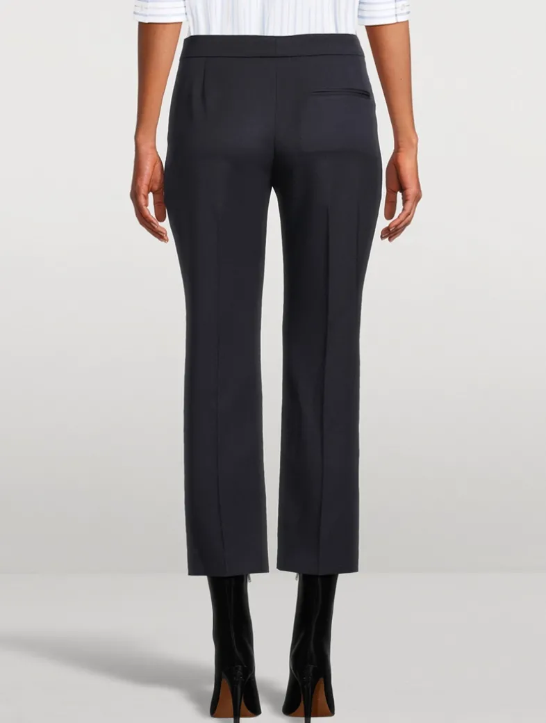 A mid-rise waist and a slim-leg cut lends a feminine touch to these mensy trousers. They are crafted in grain de poudre wool with a flat waistband and a rear welt pocket.