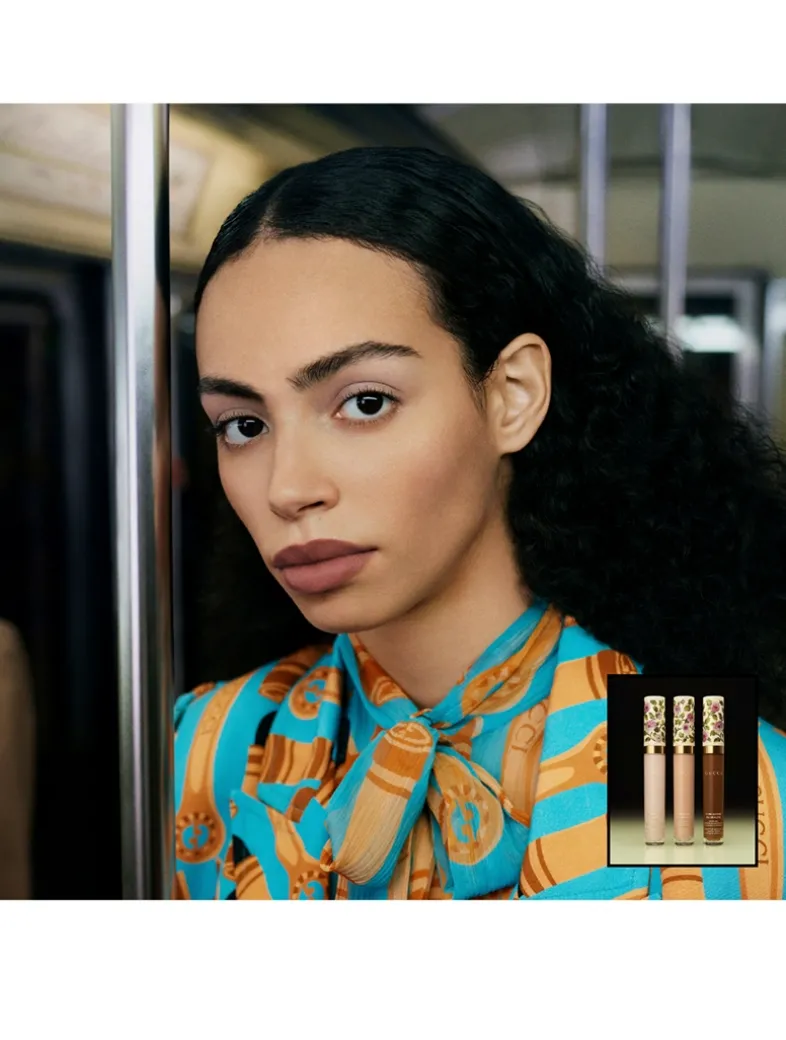 Gucci Concentré De Beauté liquid concealer is the multi-use tool to carry with you – anywhere and everywhere. This lightweight and stretchable texture can be used for targeted and all-over application to conceal, brighten and even the skin. It blends well for a long wear yet breathable, second-skin finish. Powered by skin-caring ingredients, this Gucci concealer is non-drying, non-marking, non-creasing and delivers soothing, hydrating and smoothing properties. Skin and eye bags look smoothed over time. Available in 40 shades.