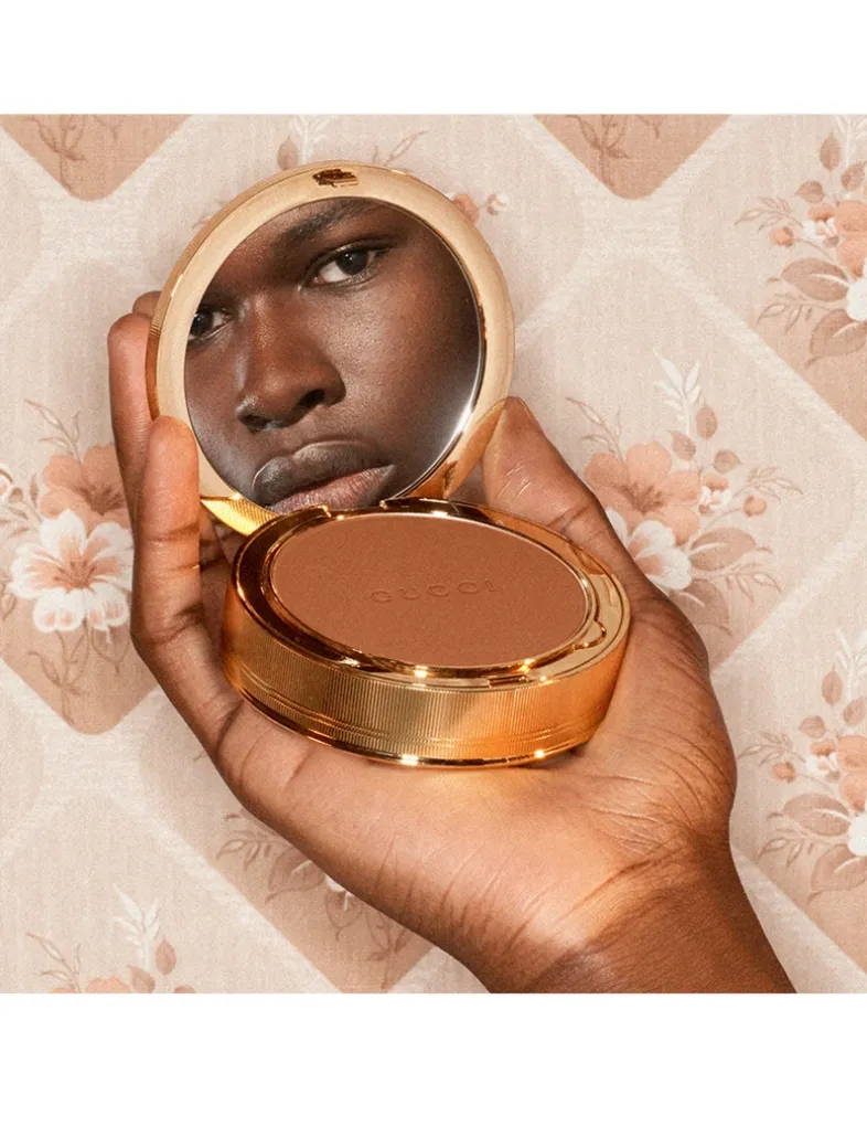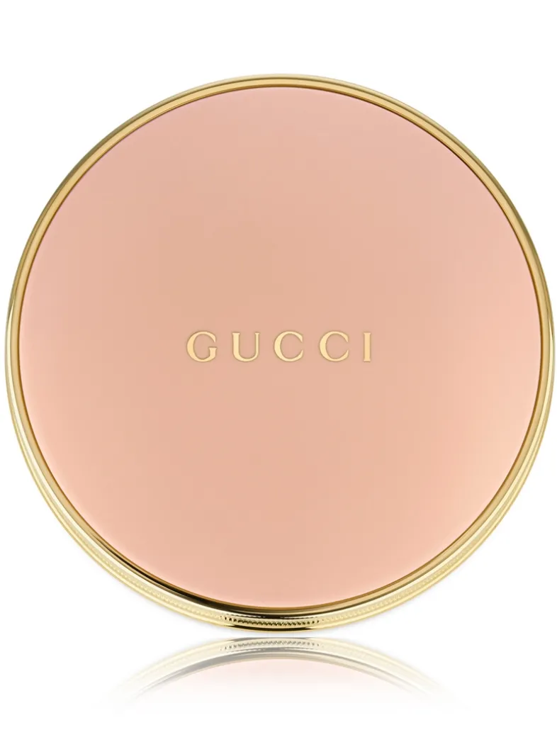 Encased within a pale pink refillable click compact with GUCCI lettering, gold trim and a mirror, this buildable face powder creates a unified complexion to look naturally perfected. Offering a lightweight, visibly smooth texture the skin looks mattified with a natural finish. A brilliant combination of micro reflecting lamellar powders spread smoothly on the skin surface for a unified complexion, while emollient agents provide comfortable feel all day long. The powder is boosted by a delicate floral fragrance, enveloping the senses as it comes in to contact with the face.