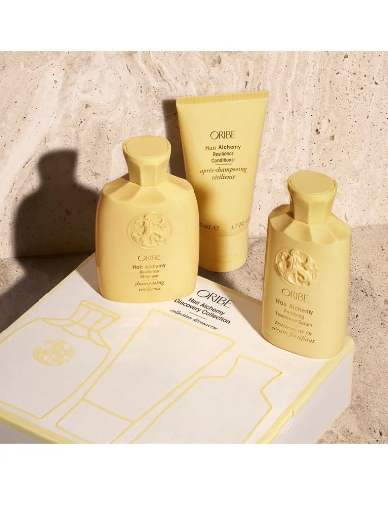 Reveal hair’s supernatural strength with the Hair Alchemy Collection. The Resilience Shampoo and Conditioner strengthen fragile strands from the inside out, while delivering a surge of moisture to replenish elasticity. The Fortifying Treatment Serum shields and reinforces fragile hair, preventing breakage and encouraging length. A $73 value.