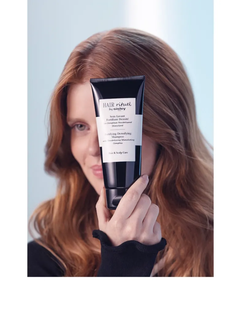 The Fortifying Densifying Shampoo is a fortifying shampoo that boosts hair’s youthfulness and vitality. This treatment energizes the scalp and helps boost hair for a visibly thicker, stronger and more resistant look. A unique formula with complementary key ingredient complexes for global action on the scalp and hair: the revitalizing stimulating complex: acts from the root to support hair vitality; the densifying complex: acts at the level of the hair to reveal fuller, plumper softer, shinier looking hair. Hair appears visibly thicker and fuller with more body. With continuous use, hair starts to regain a more beautiful and youthful, radiant quality. The Gel texture transforms into a fine, rich foam upon contact with water. Fresh scent from a core of key ingredients. A shampoo for men and women. The perfect partner of the award winning serum. The Fortifying Densifying Shampoo is the first step in a haircare ritual that offers a more youthful look. Follow with the Revitalizing Fortifying Serum, a highly effective, concentrated product to support hair vitality.