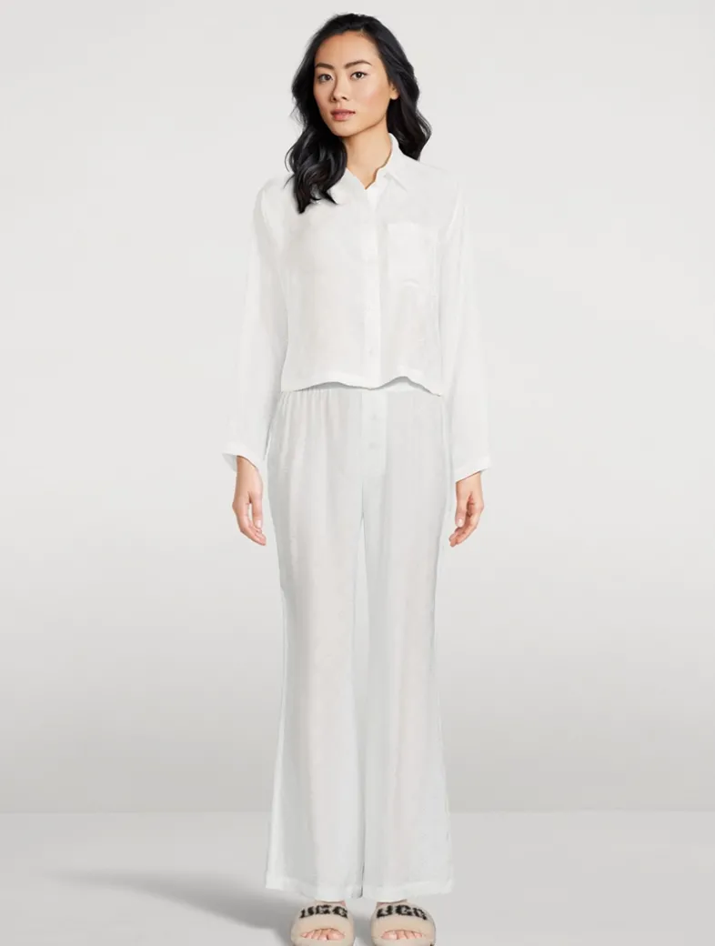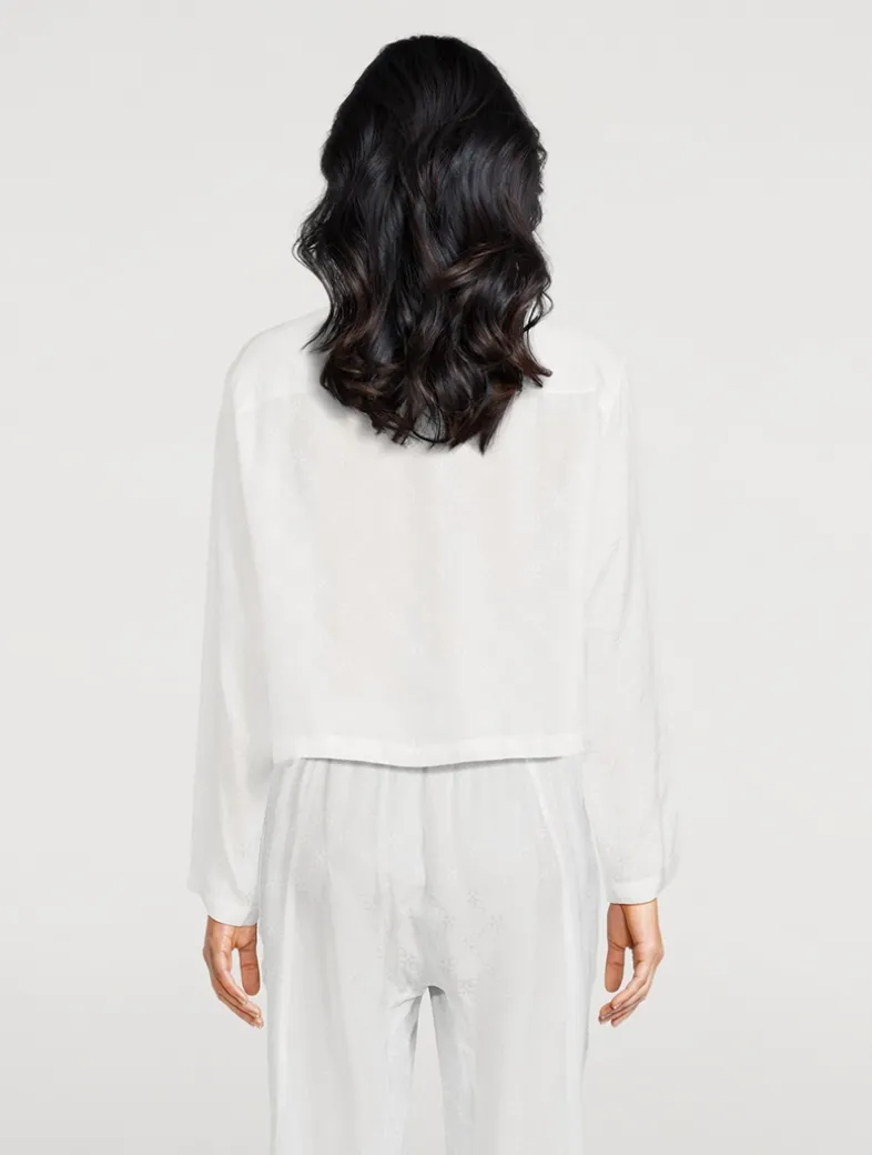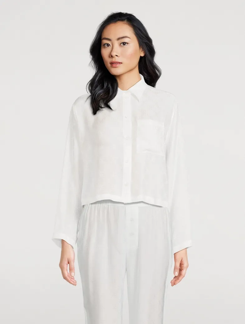 Crafted from 100% silk with a subtle sheen, the Handcuff Jacquard sleep top is designed to catch the light in the brand’s signature Kiki handcuff print. Featuring a relaxed, cropped silhouette and a front pocket detail.