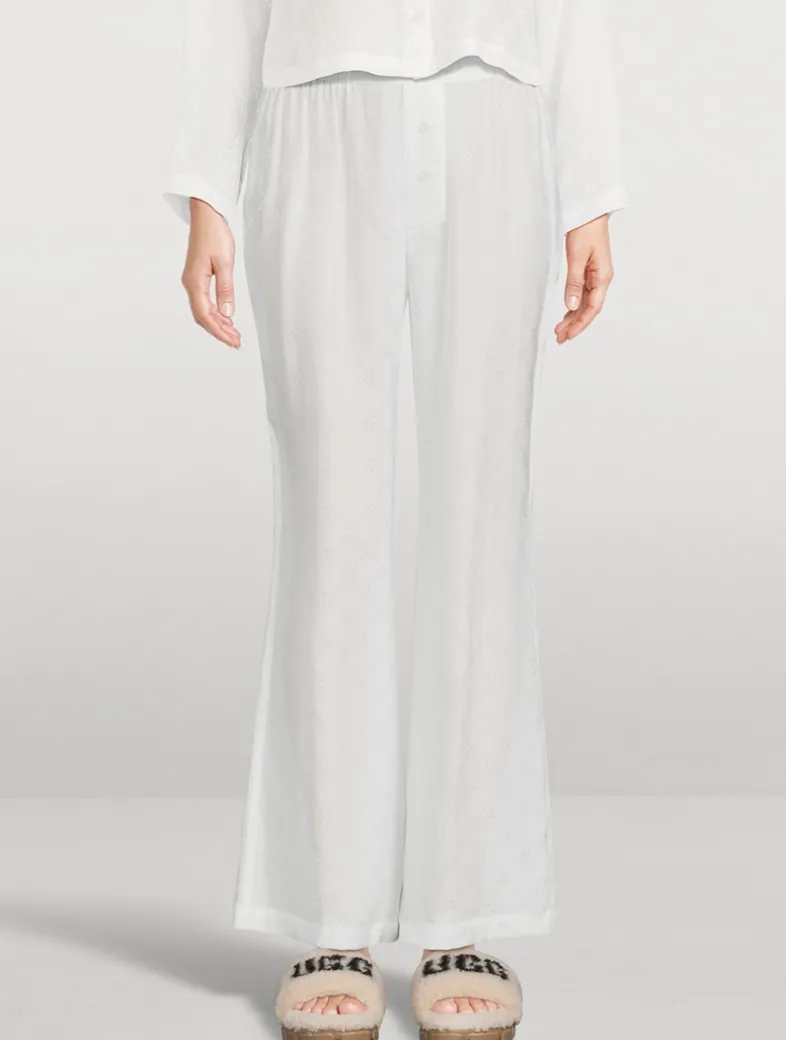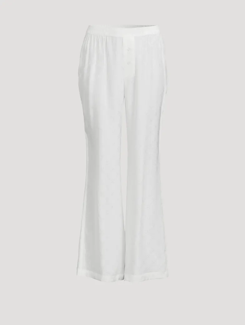 Made from 100% silk with a subtle sheen, these pajama pants showcase the signature Kiki handcuff motif. Designed with a relaxed, boxer-inspired style, they feature two front buttons and an elastic waistband for a comfortable yet refined fit.