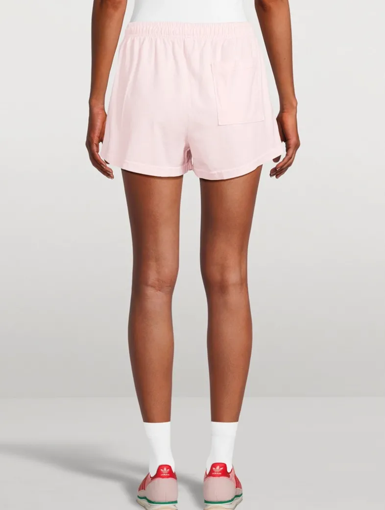These super-short, heavy jersey shorts feature an elastic waistband, two side pockets, and one back pocket.