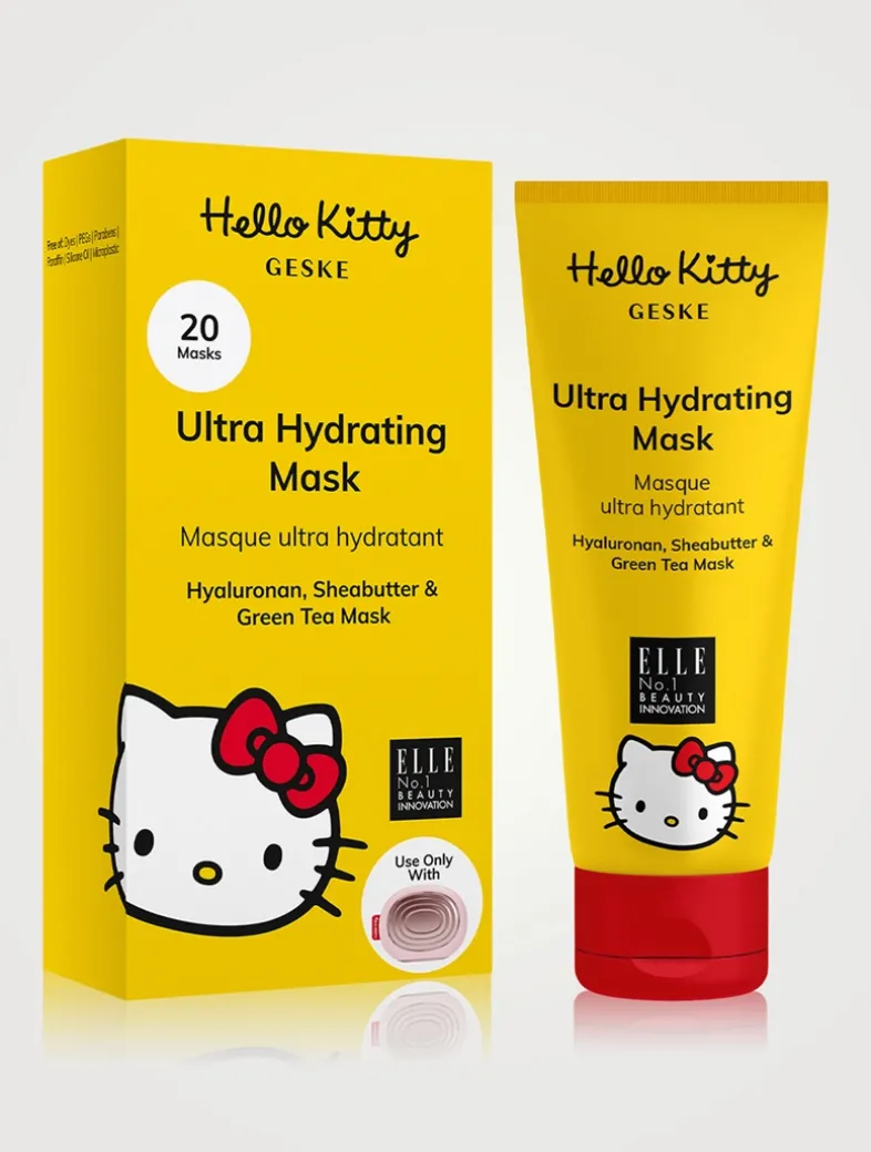 Reclaim your stunning radiance and youthful suppleness with this Ultra Hydrating Mask, which is the perfect companion to the revolutionary GESKE SmartAppGuided™ Sonic Warm & Cool Mask. Enriched with intensively moisturizing hyaluronic acid and shea butter as well as soothing green tea, the Ultra Hydrating Mask in charming Hello Kitty packaging helps you to combat dryness and unlock glowing, silky soft skin. To get the most out of your product, download the GESKE German Beauty Tech App, where you can perform an instant Skin Scan using our proprietary AI technology, the results of which are used to generate your own personalized Skincare Routine, and browse through thousands of expert training videos for our smart masks. Unlock dewy skin and a radiant complexion with the Ultra Hydrating Mask that also reduces skin impurities and wrinkles caused by dryness. Soft and tender skin was never easier to attain!