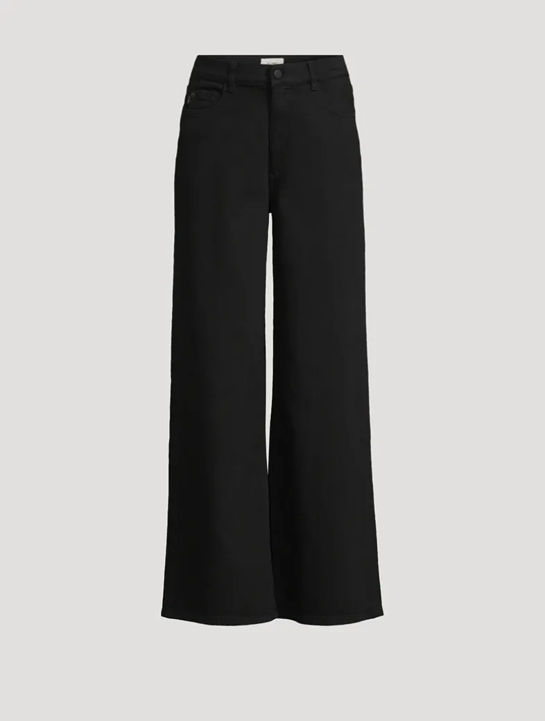 Hepburn is a vintage high-rise that is fitted through the waist and seat, tapering outward from the thigh for a wide leg with a 32