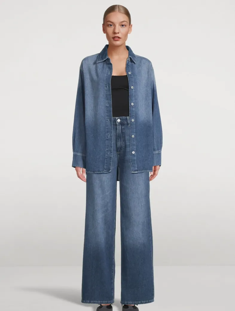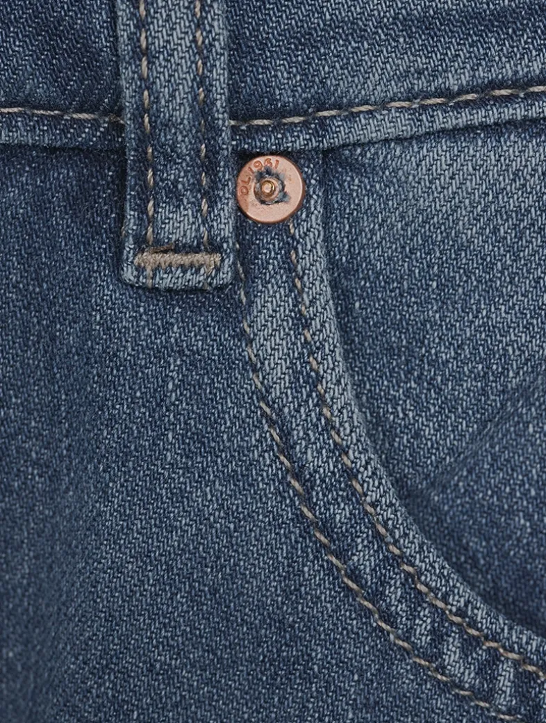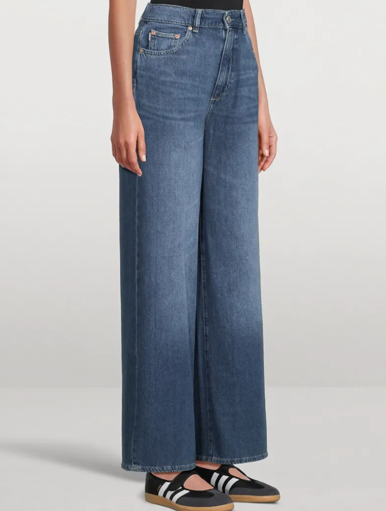Hepburn is a high-rise jean that is fitted through the waist and seat, tapering outward from the thigh for a wide leg.