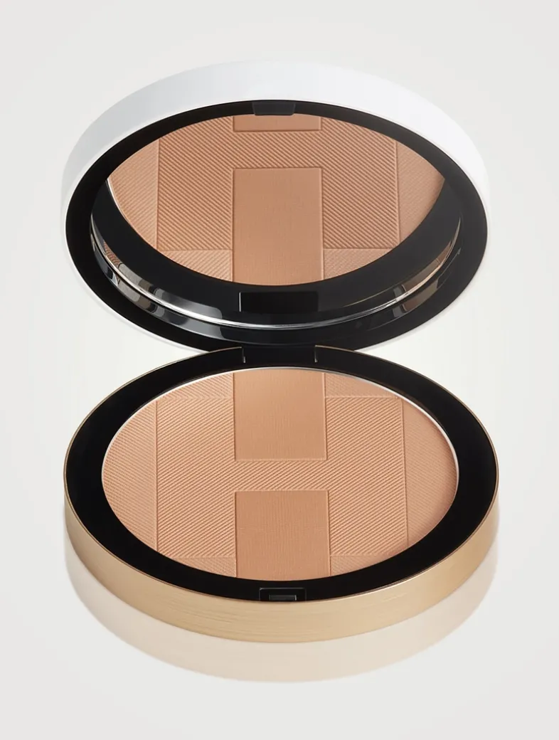 Beauty in the open air with the H Trio mineral powders. Inspired by three of nature’s elements – air, sun and earth – the healthy glow mineral powder leaves a semi-matt veil of finely iridescent, pigmented powder on the skin, illuminating it with natural warmth. Depth is added progressively and the skin comes to life, revealed in a new light, subtly sun-kissed, radiant and vibrant with the sun’s energy. Each harmony evokes the colour palette of one of the world’s landscapes. colourado: the contrasts and intensity of red-hot earth in the eponymous desert fusing into radiant light. Composed of 88% ingredients of natural origin, the healthy glow mineral powder has an exceptional sensory quality derived from technology that produces the softest and finest possible particles of powder. It blurs imperfections and unifies the complexion while caring for the skin thanks to a hyaluronic acid derivative content. The healthy glow mineral powder is suitable for all skin types, even the most sensitive. With its round case, this white and gold disc of light designed by Pierre Hardy is remarkable for its generosity. The compact powder bears a pattern of fine lines evoking silk twill, overlaid by the emblematic H passant motif. This Art Deco-influenced graphic signature was created in the mid-1920s for Hermès the saddler. The H is as functional as it is aesthetic, and offers three levels of intensity for a single shade, the vertical band being the darkest and the background the lightest. The mineral powder case can be refilled by simply removing and replacing the powder pan. Refills are sold separately.