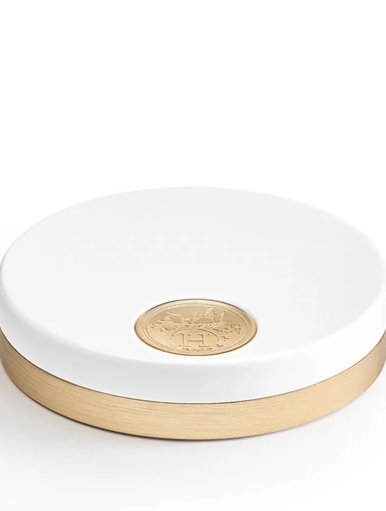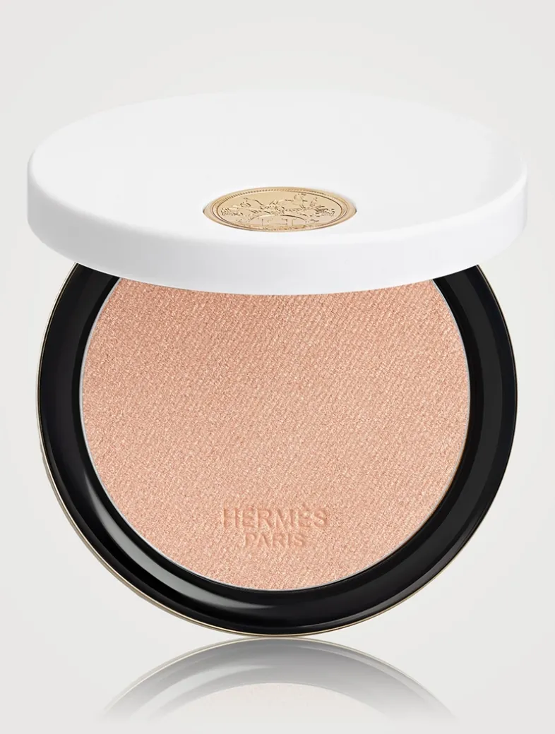 Beauty embraces the open air with the radiant matte powder, a soft, silky finishing powder that mattifies the complexion with a translucent glow. In addition, beauty embraces the open air with the radiant glow powder, a fine, silky powder that enhances the complexion with luminous radiance. The formula contains emollients for long-lasting softness and comfort. Its round case with off-center mirror is a disc of light in white and gold designed by Pierre Hardy. A lightweight object, it was created for use on the go. Slipped into its orange box, it is a pure Hermes object.