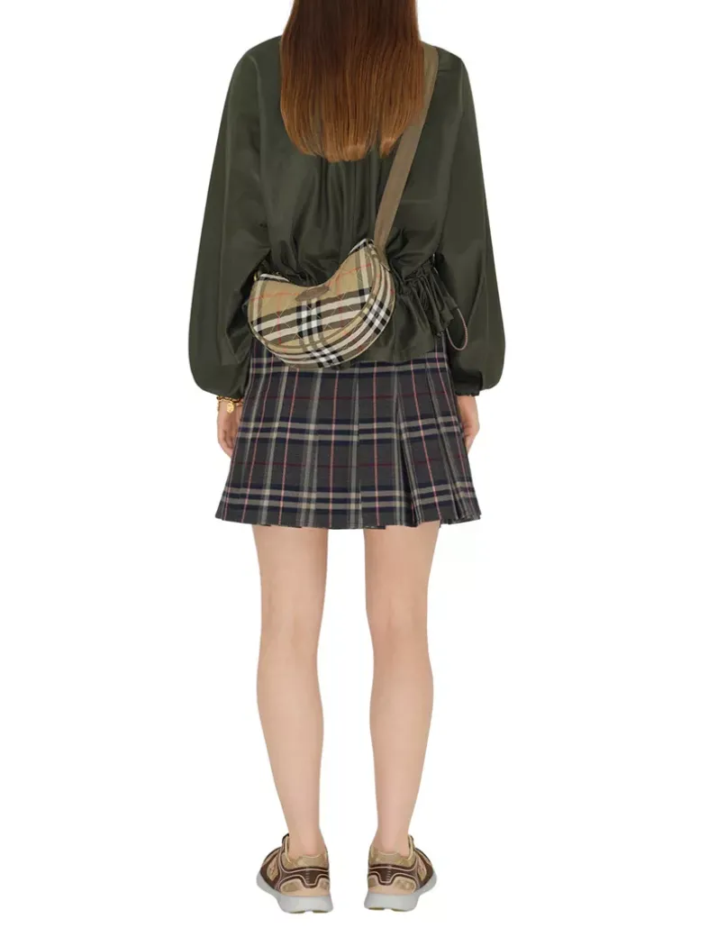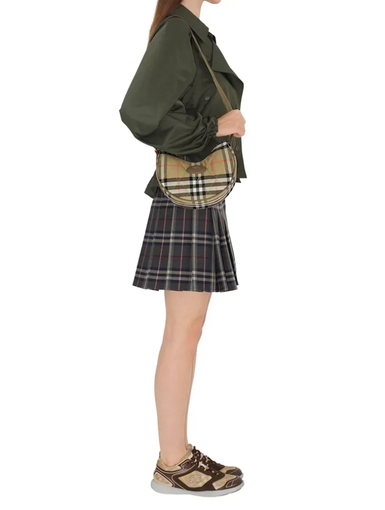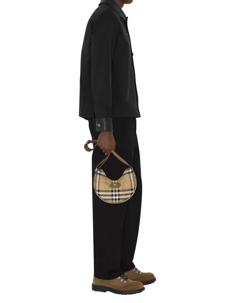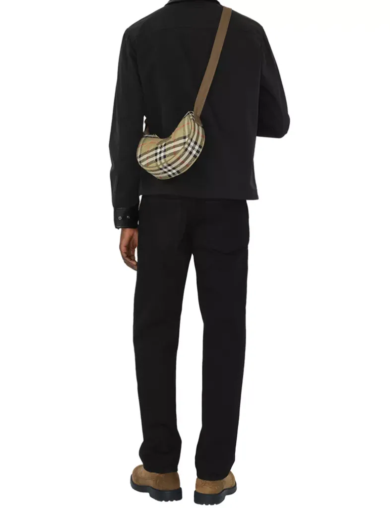 Inspired by country pursuits, a crossbody bag made from a quilted nylon blend woven with the Burberry Check in a seasonal colourway. The design features tonal leather trims and our Knight stamp, an archival motif first seen on Burberry bags in the 1980s. Switch from a shoulder to a crossbody bag using the adjustable webbing strap.