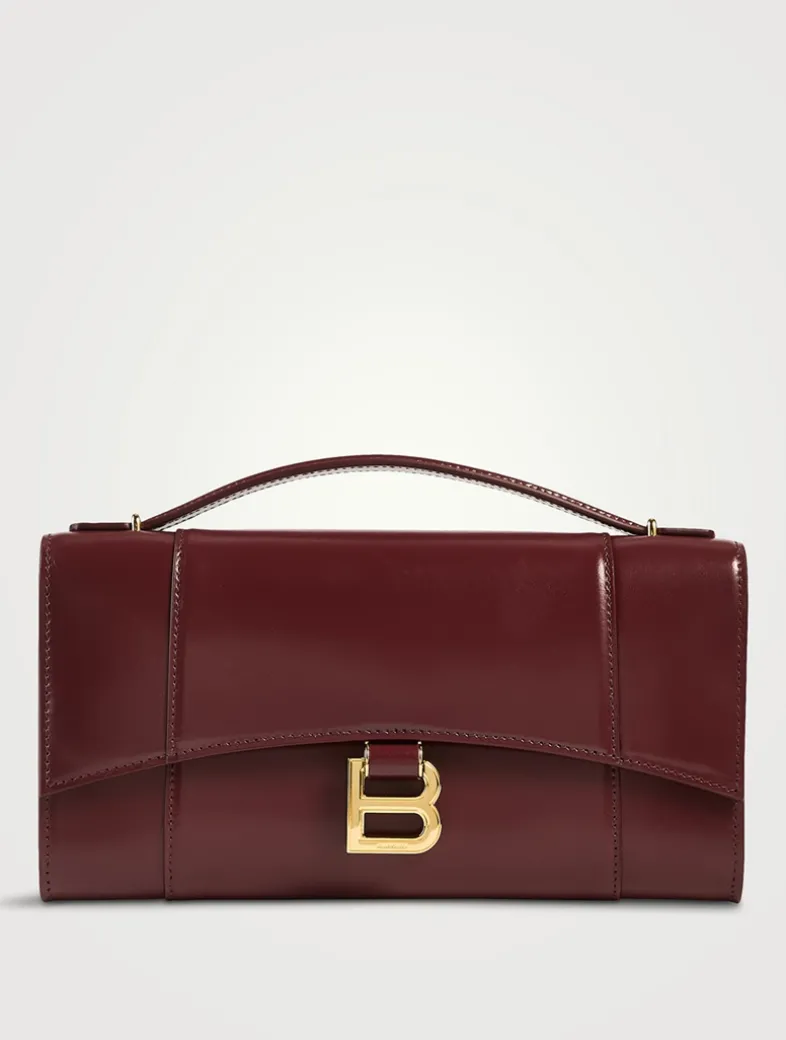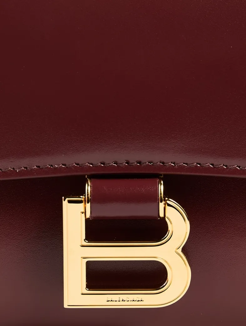 Designed with a distinctive curvilinear flap, this rectangular clutch features hanging B logo hardware and a flat handle. It has a single compartment with multiple card slots inside.