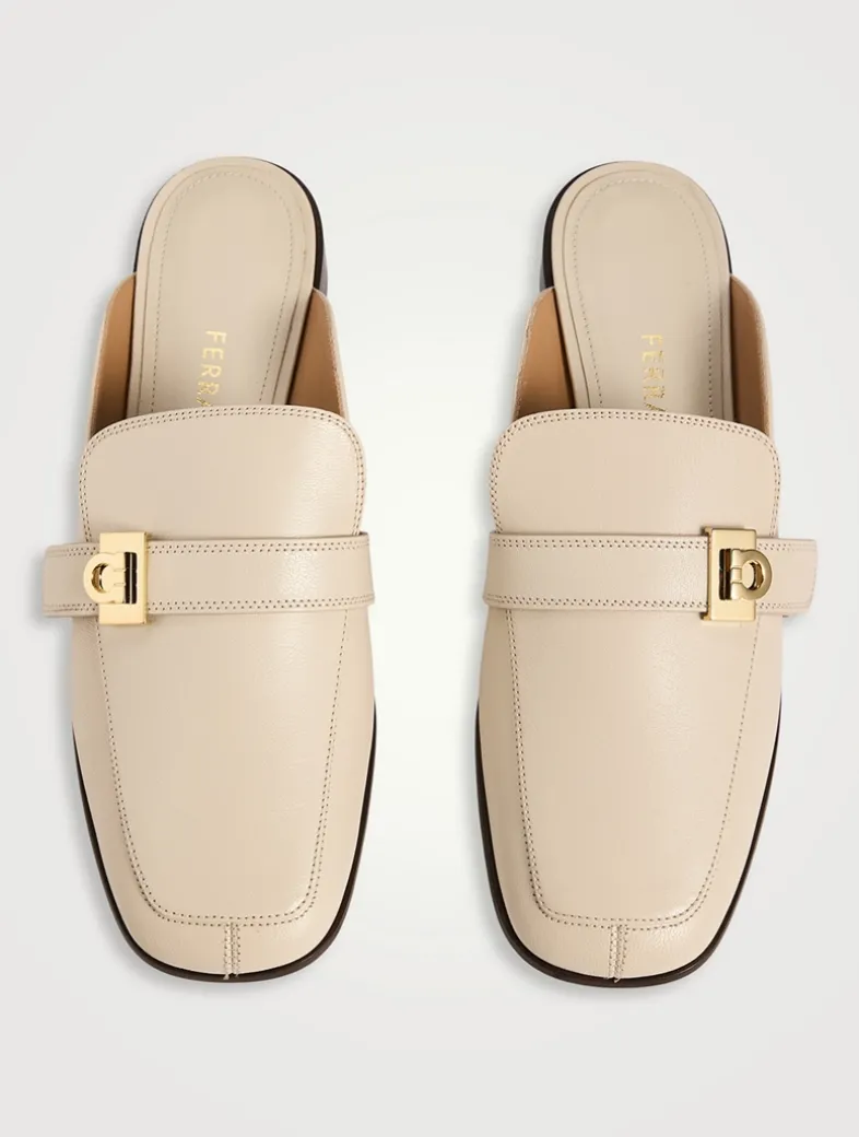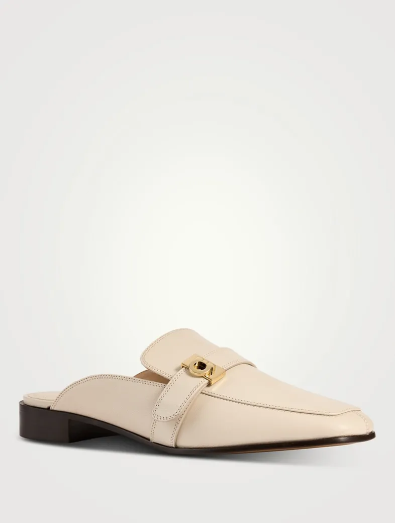 1970s style makes a comeback in this menswear-inspired mule. It has a softly squared toe and an elegant strap across the vamp, decorated with the gold-tone Hug buckle for an iconic touch. The rubber-reinforced leather sole ensures a non-slip fit.