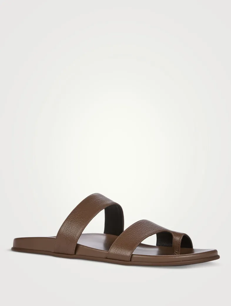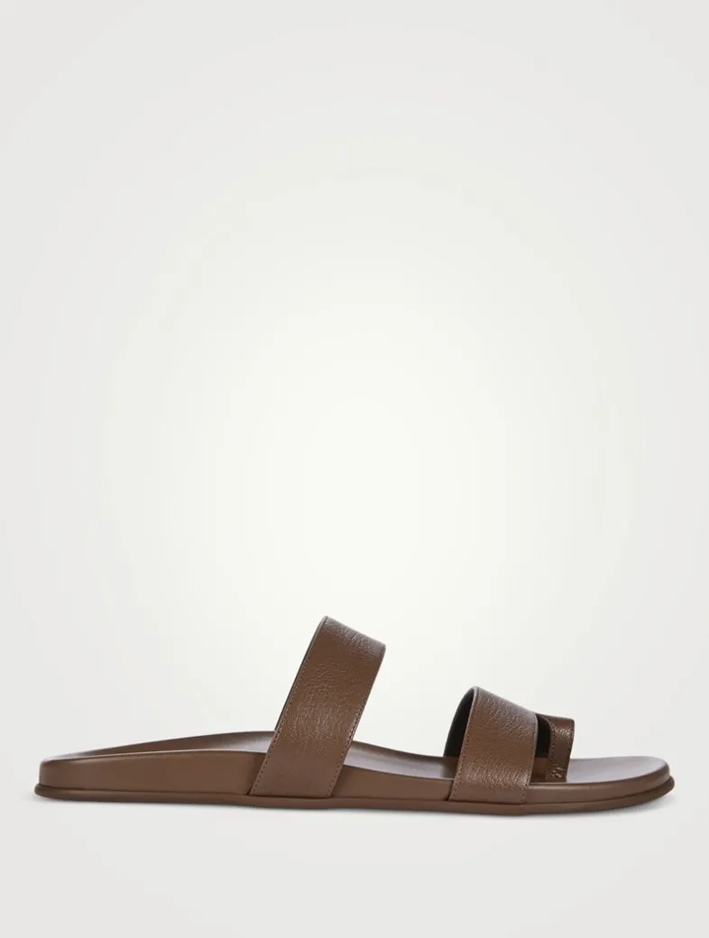 These double-strap sandals in grained calfskin leather are designed with an added toe strap, an ergonomic insole, and a rubber sole.