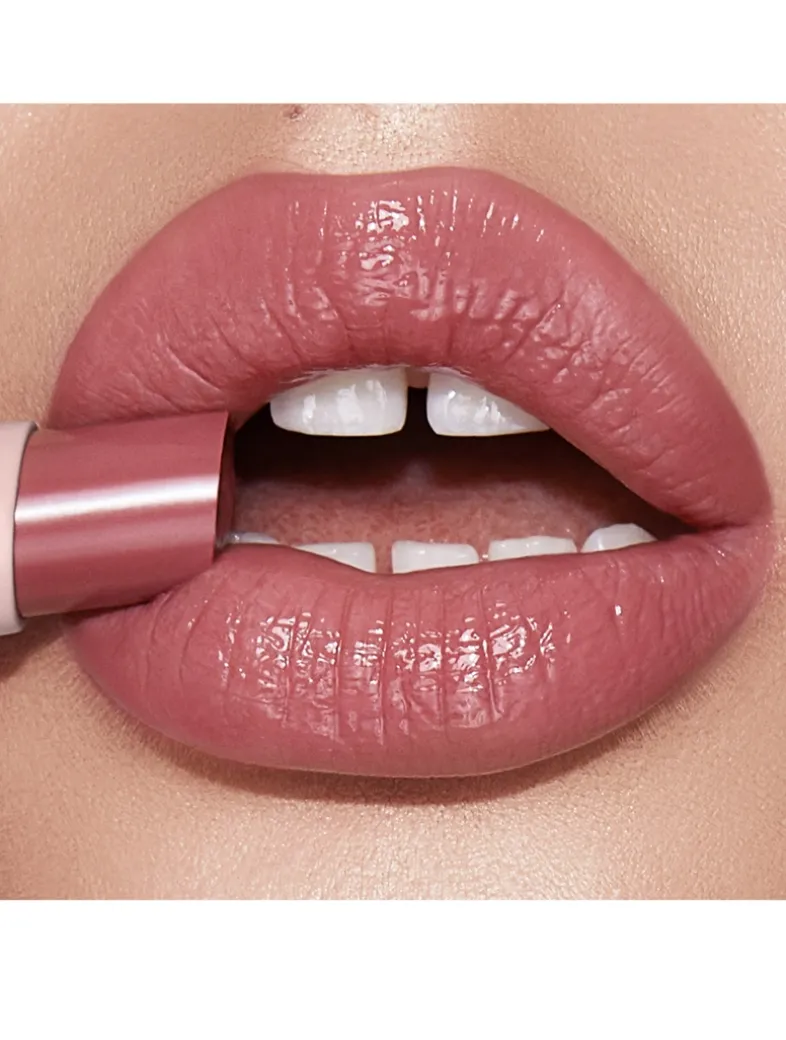 This lipstick balm features a Hyaluronic Acid infused formula that provides the hydrating power of a balm with the colour payoff of a lipstick for a pigmented, dewy lip look. The lipstick balm formula was created to leave lips looking plumper, smoother, and more hydrated, while giving them a happy glow. It glides on with a nourishing, cushiony, dewy-soft, gloss finish.