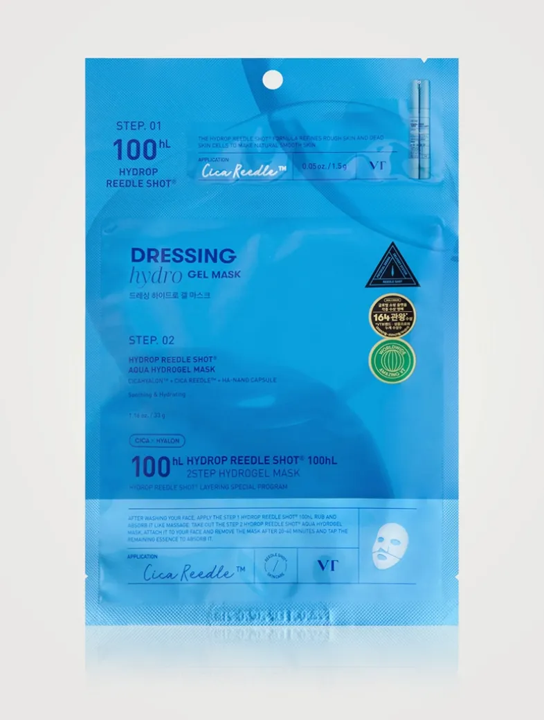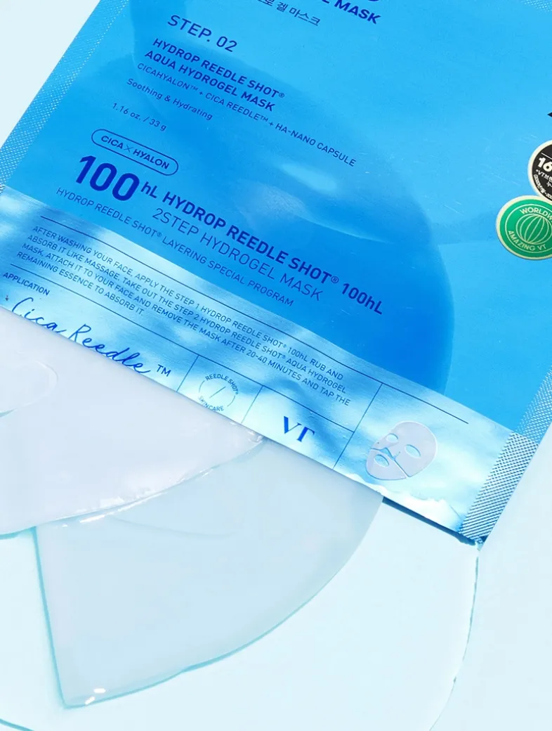 Hydrop Reedle Shot 100 2 Step Hydrogel Mask is a two-step skincare system designed to support the appearance of well-hydrated and refreshed skin. The first step includes Hydrop Reedle Shot 100, a lightweight ampoule formulated with CICAHYALON™, a blend of centella asiatica extract and hyaluronic acid that helps maintain skin moisture and promote a healthy-looking complexion. It also features CICA REEDLE™, fine micro-particles that help enhance the overall skincare experience while offering a gentle, comforting feel on the skin.