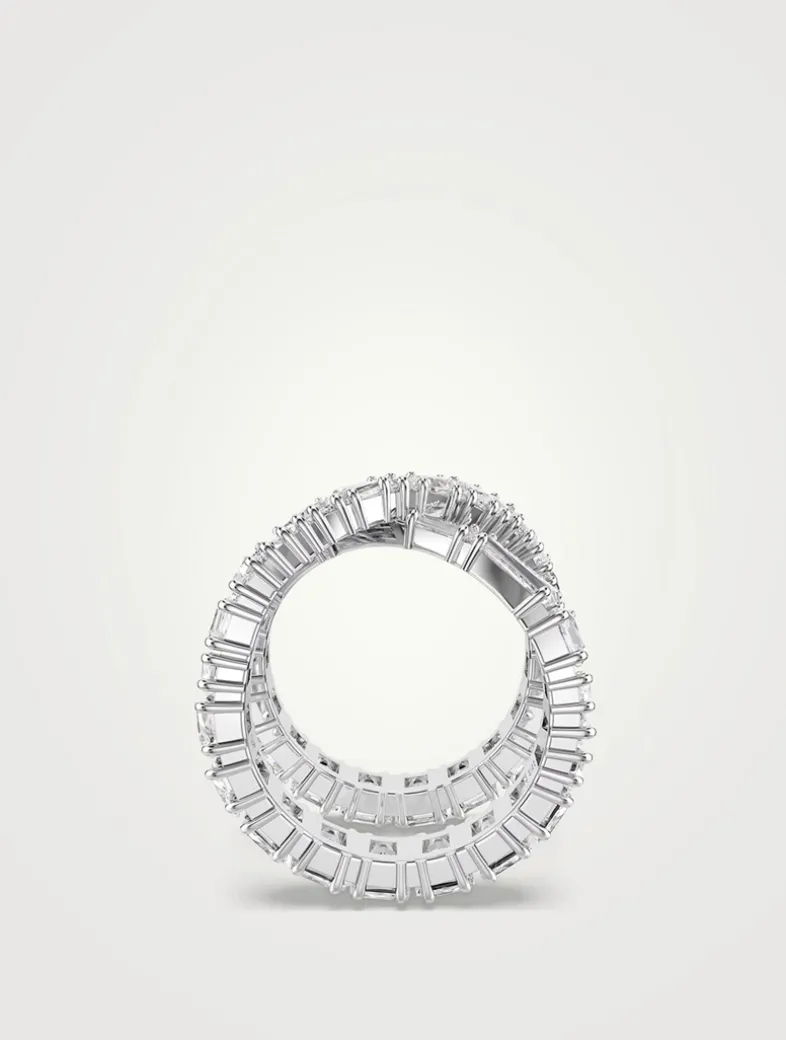 Inspired by the elegant and timeless infinity motif, this mesmerising Hyperbola ring is a unique way to energize your style. The rhodium-plated jewellery features a never-ending band, which crosses over at the middle. Brightly embellished with an array of clear Swarovski Zirconia, the versatile piece can be worn either way around.