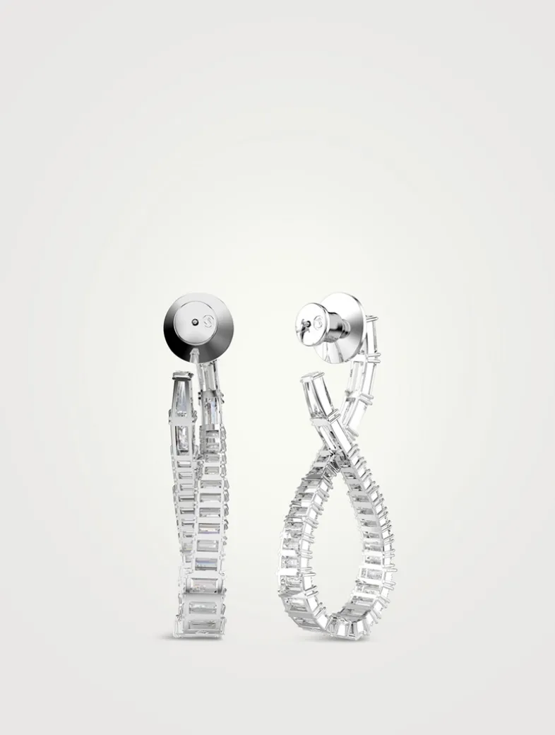 Inspired by the shape of an infinity motif, these striking Hyperbola earrings exude endless beauty. Each rhodium-plated piece is crafted with a slender twist and adorned with an array of clear Swarovski Zirconia in mixed cuts.