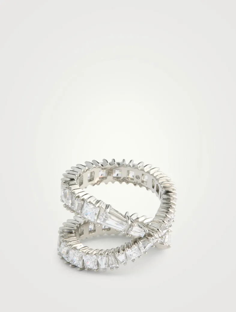 Inspired by the elegant and timeless infinity motif, this mesmerising Hyperbola ring is a unique way to elevate any look. The rhodium-plated jewellery features a never-ending band, which crosses over at the middle. Embellished with an array of clear Swarovski Zirconia, the versatile piece can be worn either way around.
