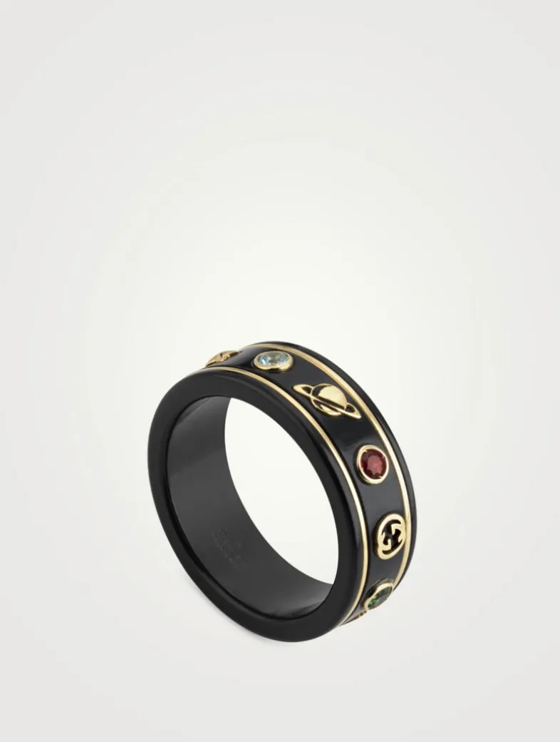 Two-tone band with planet, bee, star and interlocking G motifs.