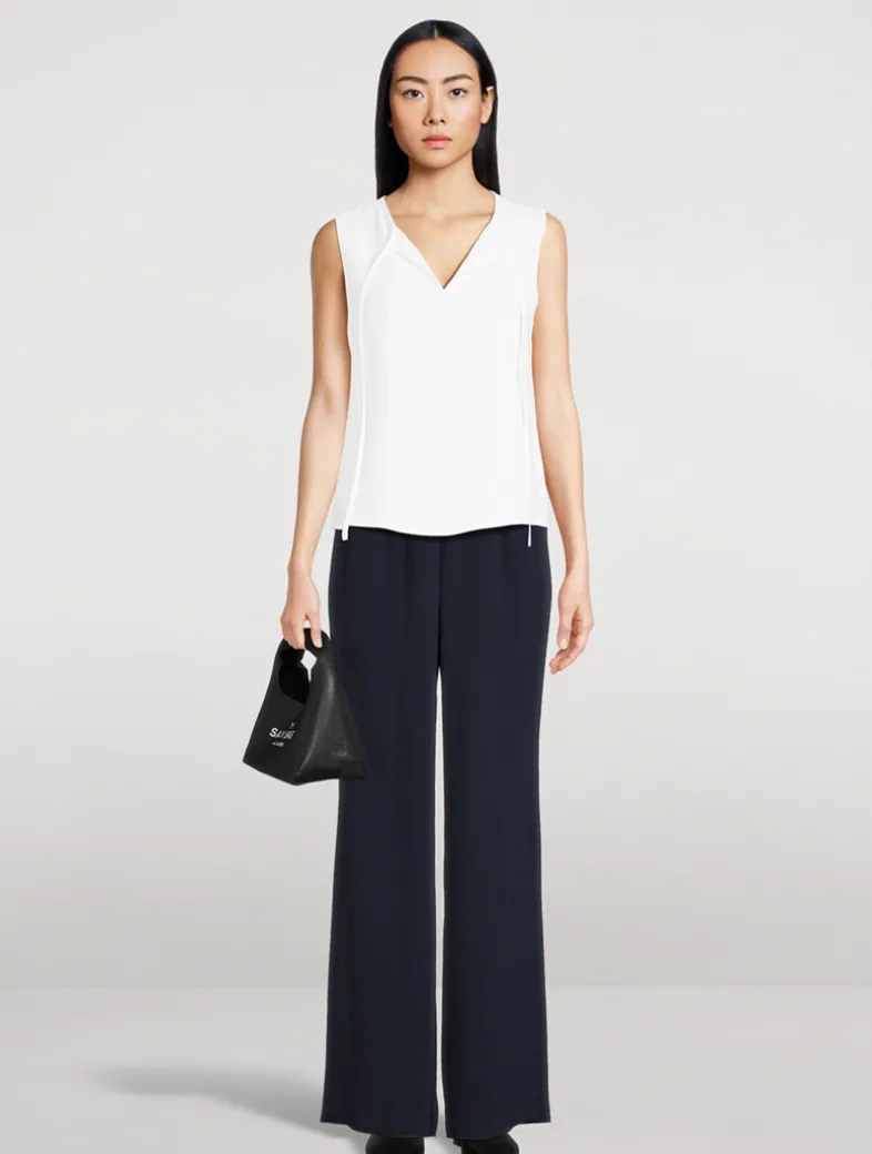 These trousers feature an iconic cartridge-effect waist with gathering and internal elastic. They are made of a viscose and acetate-blend fabric adorned a subtle iconic all-over chevron pattern. This style is part of the Icon capsule collection: the essence of Emporio Armani, providing a modern interpretation of the brand’s DNA by updating the iconic shapes and volumes of its past, aimed at affirming a classic, evergreen allure.
