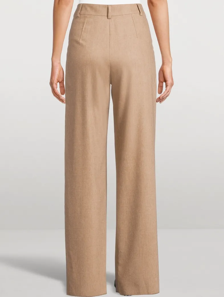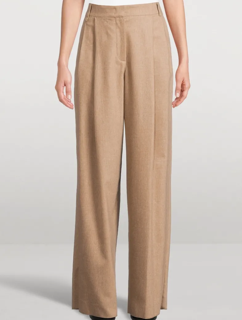 These pleated trousers are made of a virgin-wool flannel with a small percentage of cashmere that enhances its smooth feel. The pleats create a sophisticated vertical crease along the wide leg. This garment is part of the Icon capsule collection.