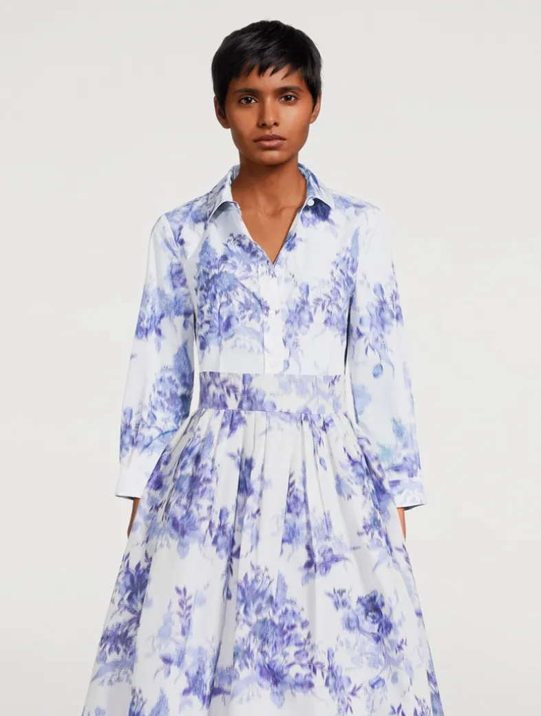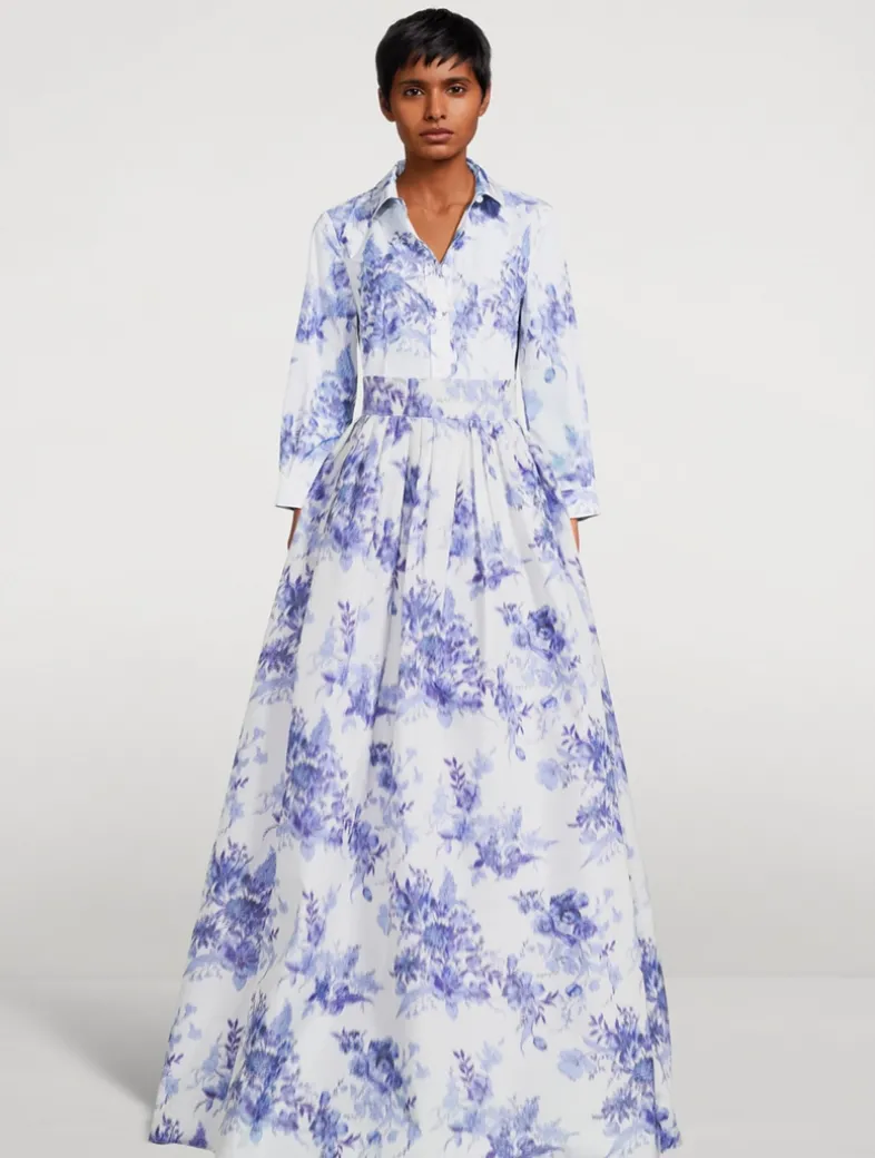 Inspired by the serene elegance of Delft porcelain, this taffeta shirt is printed with a vintage-inspired floral motif. Chiné printing gives the pattern a soft, blurred finish.