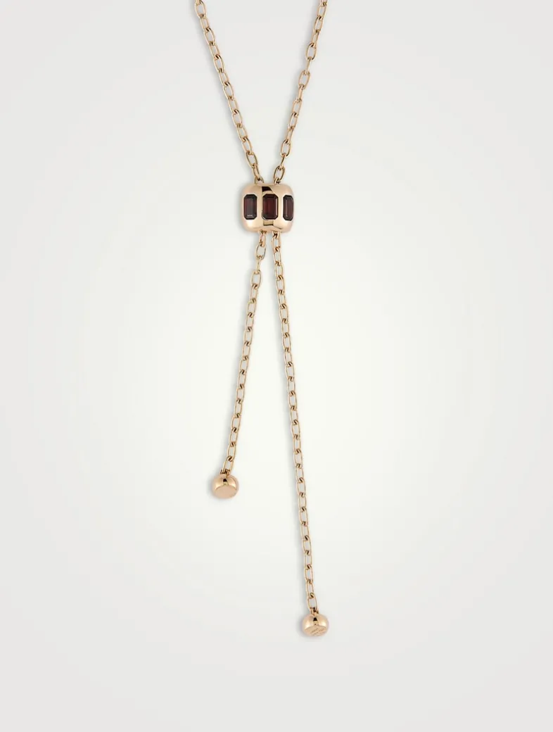 Exhibiting half a century of savoir-faire, the Iconica collection is an homage to Pomellato’s fine goldsmithing skills and Milanese roots. The open chain of this lariat-style necklace is held together with an adjustable gold slider covered in gems. This innovative sliding system has a versatile all-gold mechanism that glides over the delicate chain allowing different ways to wear the necklace.