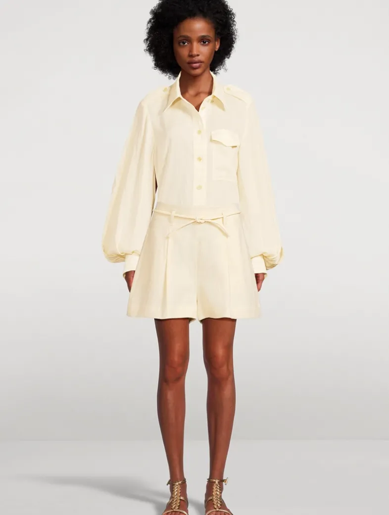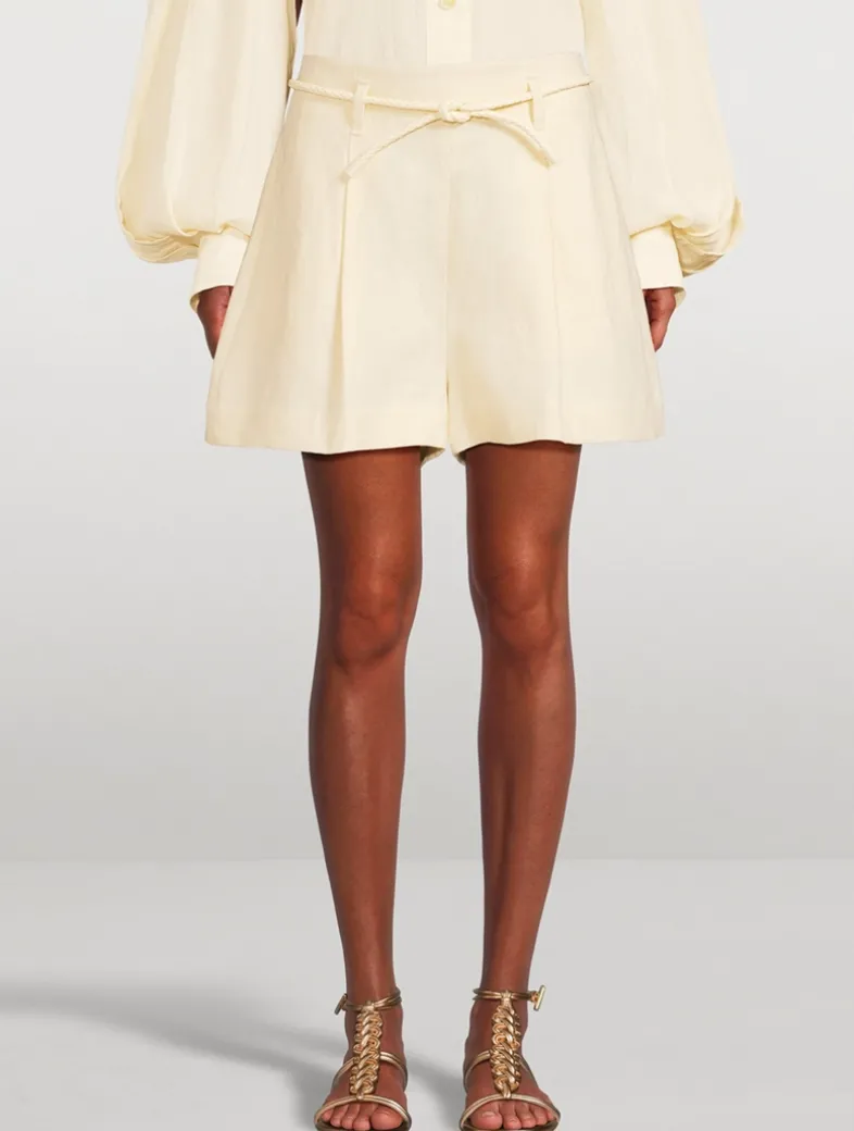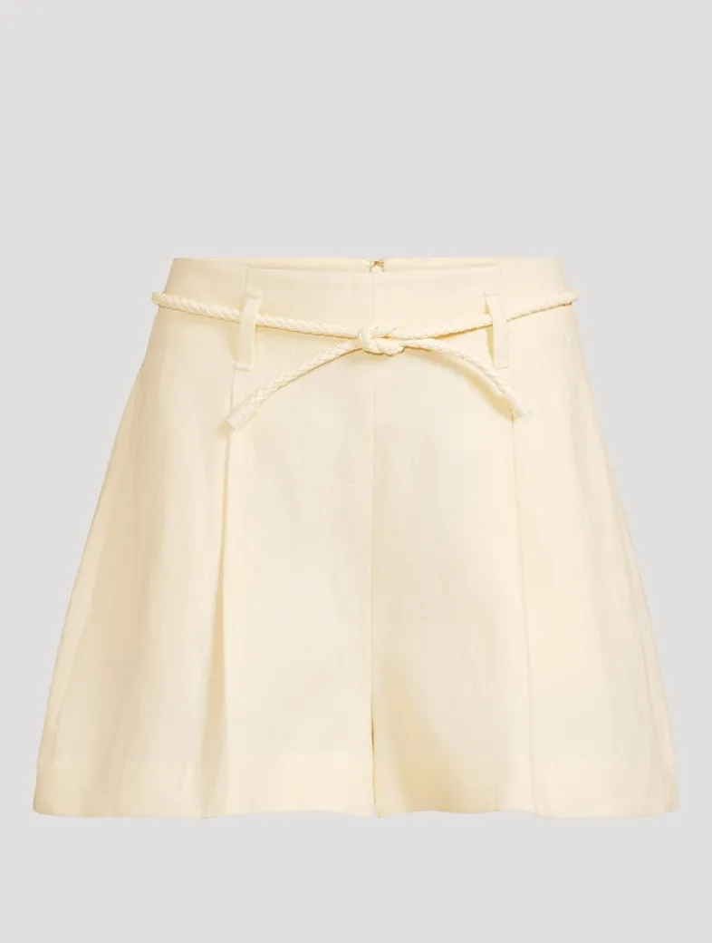 Made from pure linen, these high-waisted shorts feature side seam pockets and welt pockets on the back. They have a removable rope belt in a tonal colourway. They close with an invisible zip at the centre back.