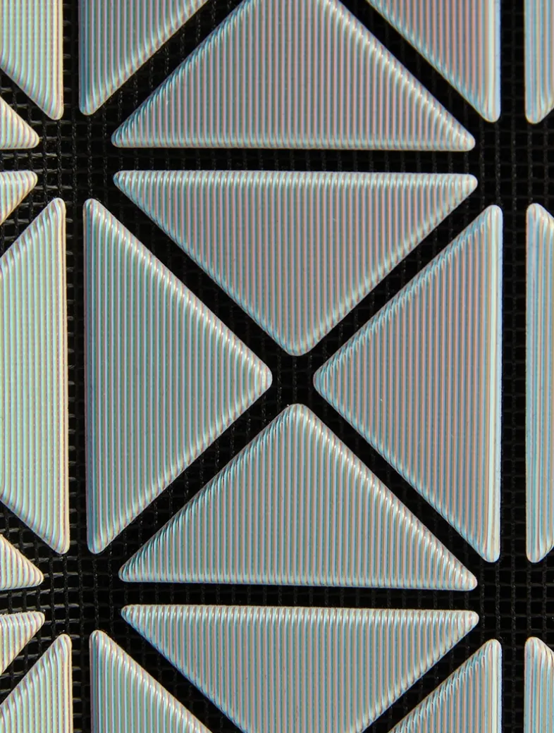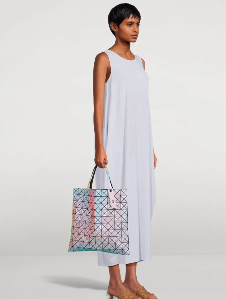 The playful Illusion series features lenticular material with fine multicolour stripes beneath the lens, creating dynamic gradients that shift with every movement for a bold, vibrant effect. This large tote has two adjustable handles and a secure interior zip pocket.