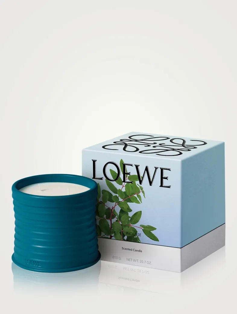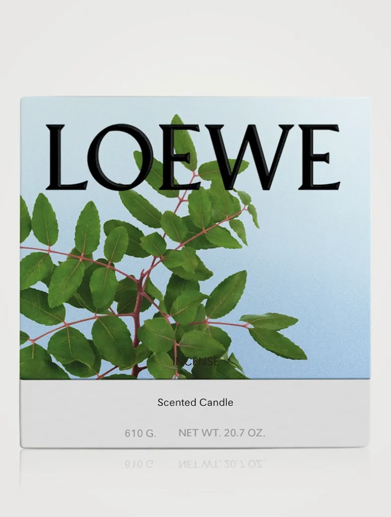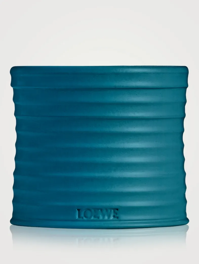 The ‘Incense’ candle has a mid-intensity fragrance with a balsamic, woody scent evocative of frankincense: a resin harvested from the sculptural Boswellia Sacra tree native to Africa and Arabia. Its resinous and citrussy aspects unfold to reveal sweet, fresh notes over time. Crafted in natural wax with a single cotton wick, the candle is presented in a deep-blue glazed terracotta vessel with a stamped base. All LOEWE Home Scents items are olfactory creations that highlight nature’s most natural and pure scents. *Due to their handcrafted nature, no two Home Scents Scented Candles are exactly the same.