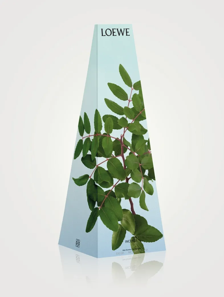 A candlestick-shaped candle, crafted in scented wax. The ‘Incense’ candleholder has a high-intensity fragrance with a balsamic, woody scent evocative of frankincense: a resin harvested from the sculptural Boswellia Sacra tree native to Africa and Arabia. Its resinous and citrussy aspects unfold to reveal sweet, fresh notes over time. This candlestick-shaped candle has a single cotton wick and should be placed on a heatproof surface such as our terracotta base designed for this use, available to buy separately. All LOEWE Home Scents items are olfactory creations that highlight nature’s most natural and pure scents. *Due to their handcrafted nature, no two Home Scents Wax Scented Candleholders are exactly the same.