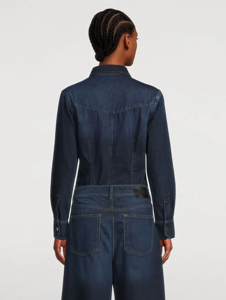 Ines is a tailored button-down shirt with a point collar, a rounded hem, and Western-inspired detailing.