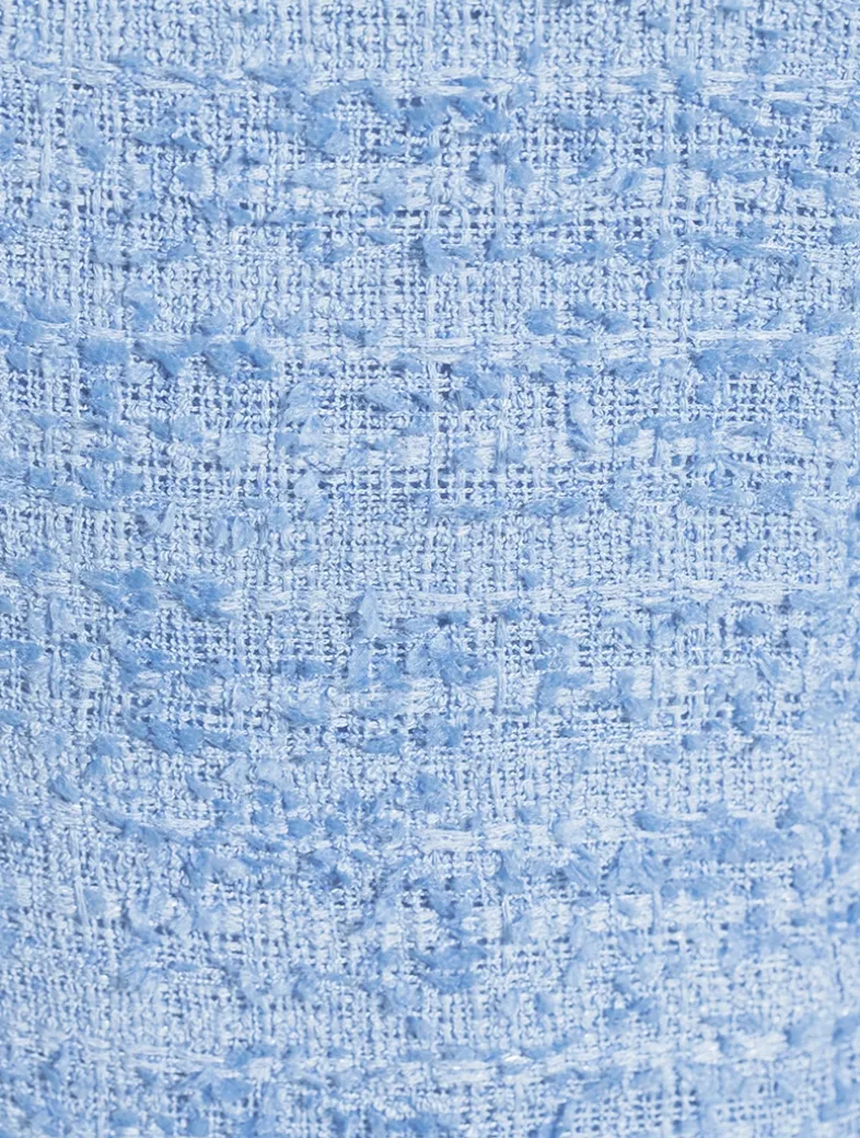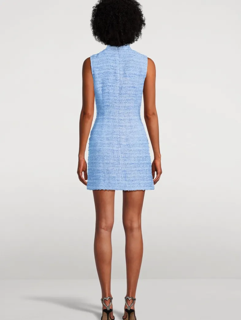 A tweed construction is mixed with traditional styling to create this Cheongsam mini. The sleeveless dress has piping along the collar and seam featuring SAU LEE’s signature hand-tied pipa knot detail.