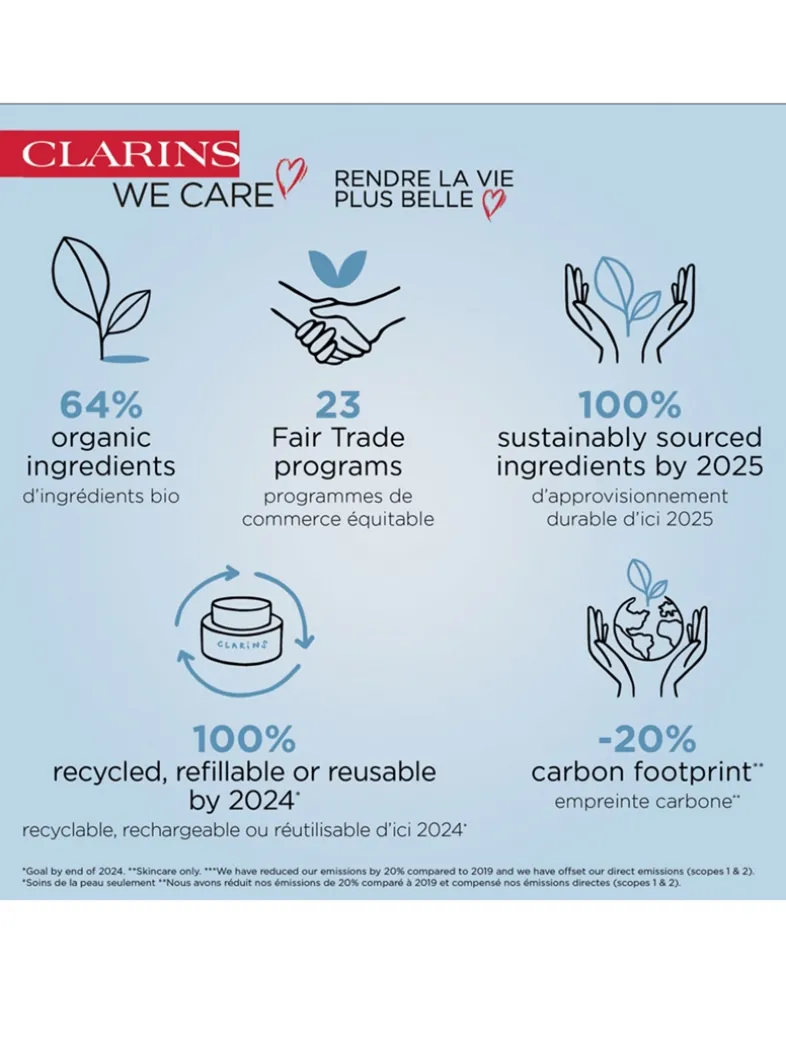 To minimize its environmental footprint, Clarins has redesigned this product in an even more eco-friendly bottle with a lighter capsule.
