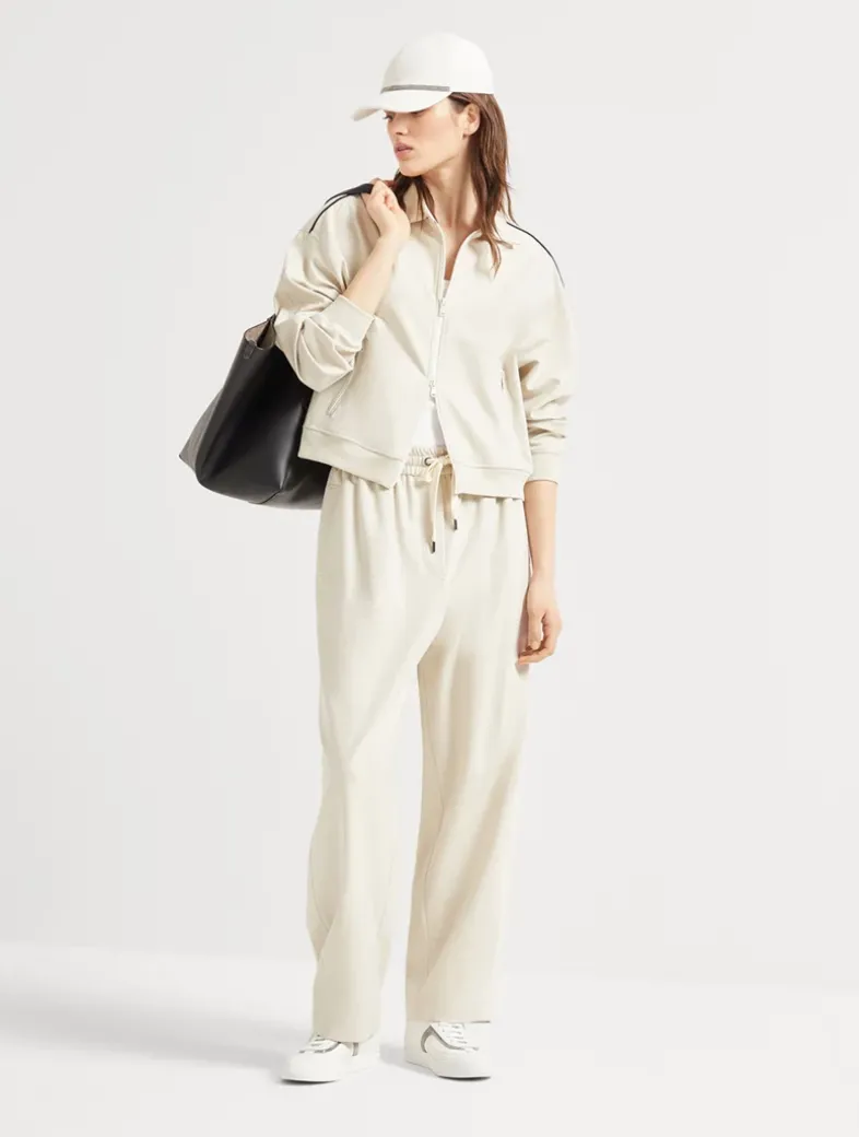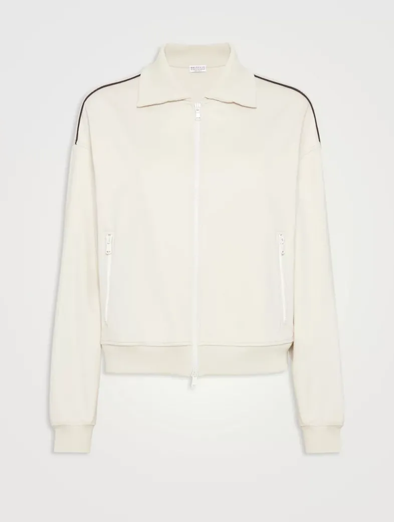 Couture interlock sweatshirt with zipper, piping and monili
