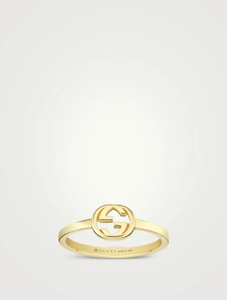 Crafted in 18k gold, this sleek ring is designed with Interlocking G detail.