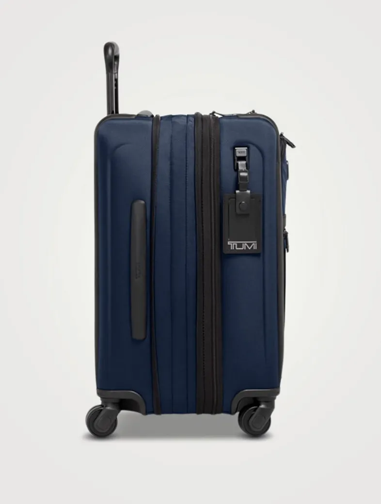 This FXT® ballistic nylon carry-on brings together innovation, superior performance, and best-in-class functionality. Its exterior features multiple zip pockets, retractable top and side grab handles, bottom grab handle, four dual spinner wheels, and built-in USB port. The interior has a hanging mesh zipper pocket with removable USB cable, a removable garment sleeve with fiberglass rod, hanger bracket, and multiple zippered pockets.