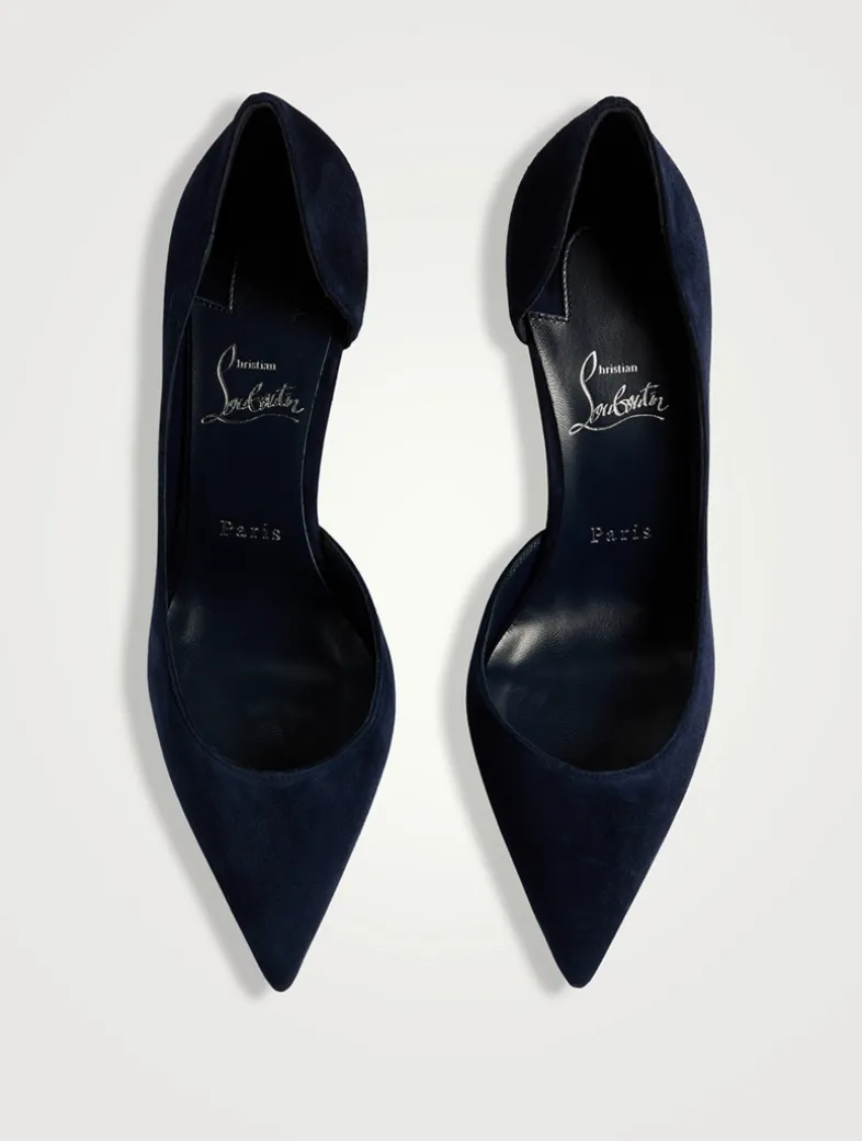 The Iriza pump showcases Maison Christian Louboutin’s savoir faire with its asymmetrical design, enchanting sleek lines, and timeless elegance. It is set on an 85mm heel and crafted in all-over veau velours. An audacious low-cut vamp and pointed toe add a sophisticated finish.
