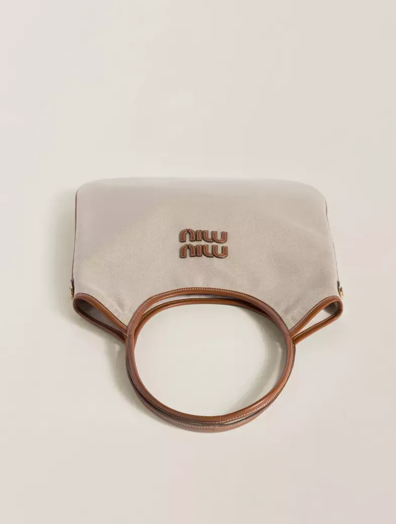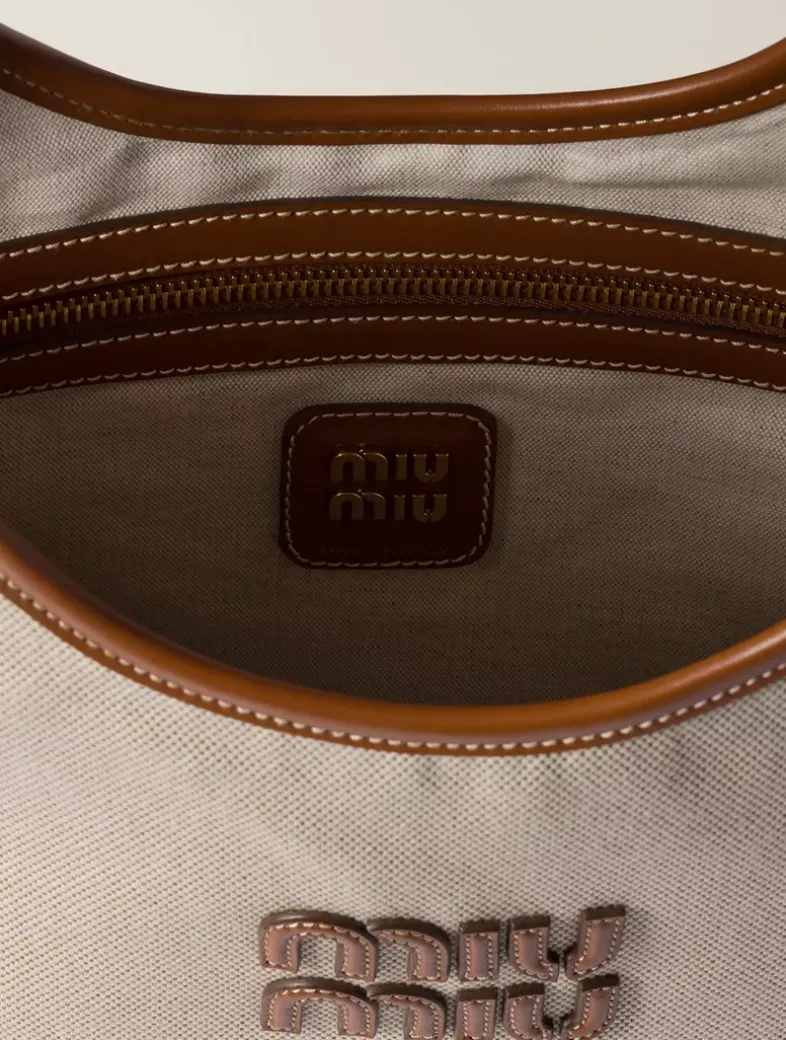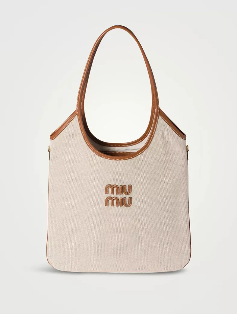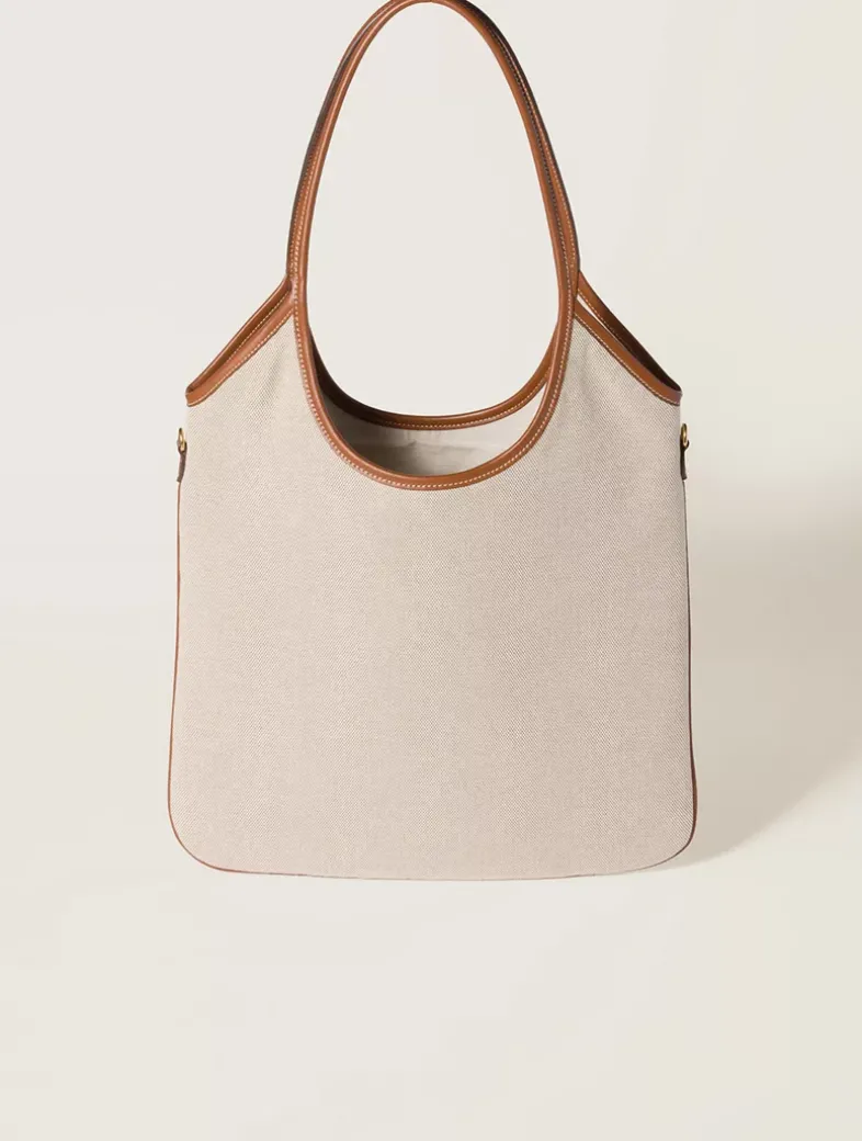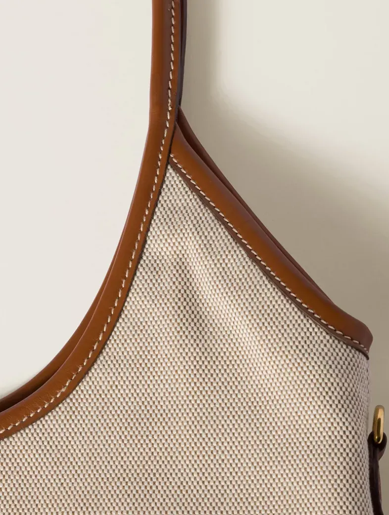 Leather handles Gold-tone hardware Linen interior with zipper pocket Leather lettering logo on the front