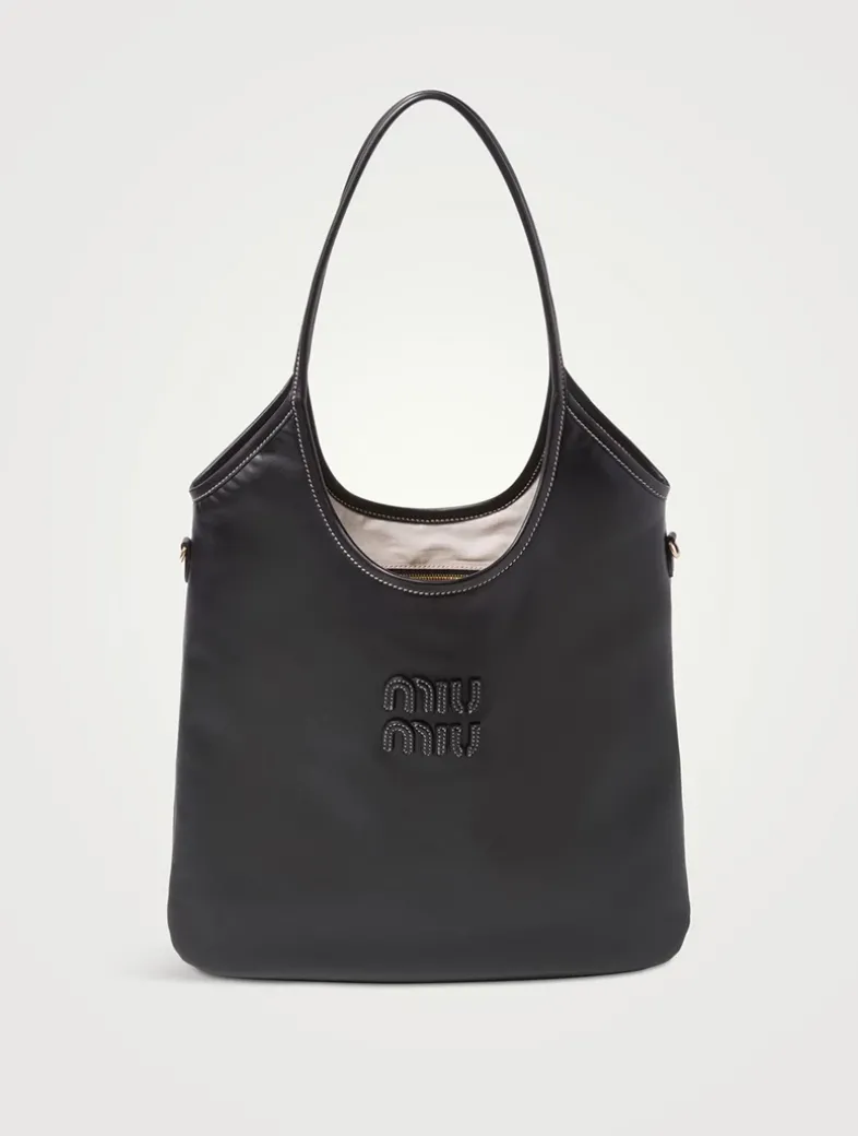 Leather handles Gold-tone hardware Leather lettering logo on the front Fabric lining with zipper pocket