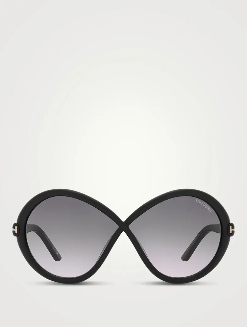 Defined by their bold criss-crossing frame in glossy acetate, these oversized sunglasses are detailed with signature T inlays at the temples.