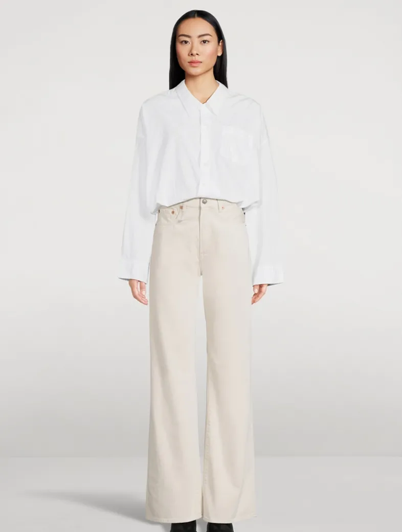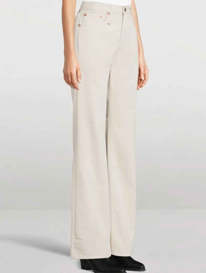These high-rise, slim-leg jeans are made from 100% cotton denim and feature a subtle flare for a long, lean silhouette.