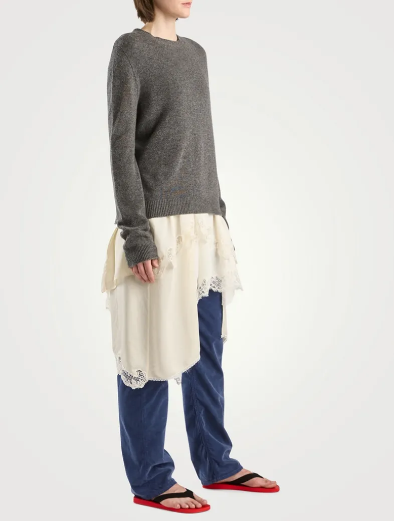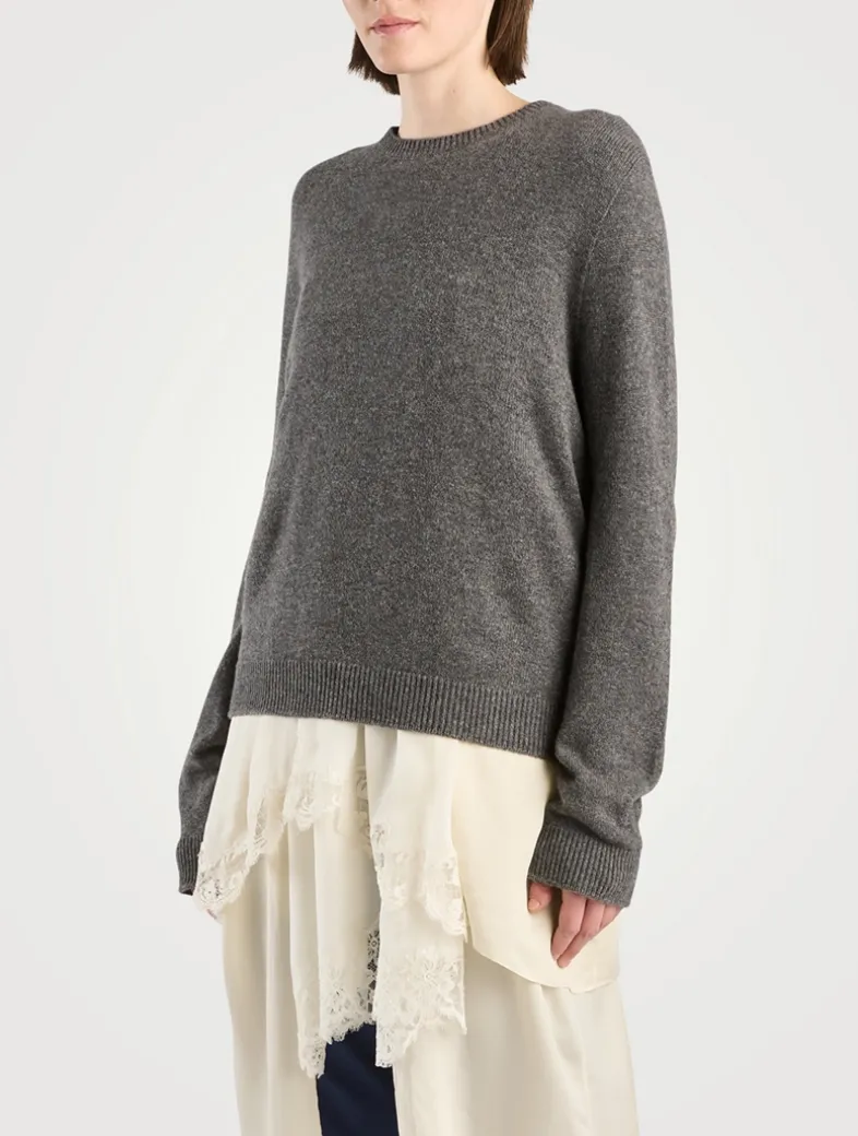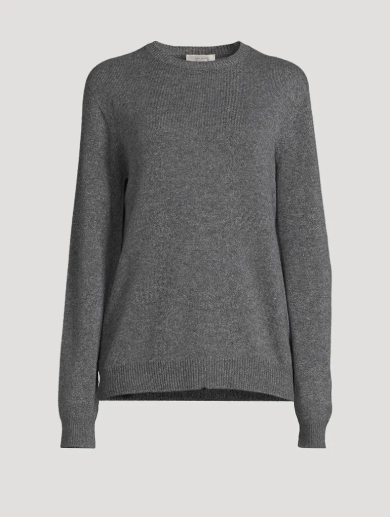This classic crewneck sweater in finely knit cashmere is designed with a straight fit, ribbed neckline, cuffs, and hem, and signature center back detail.