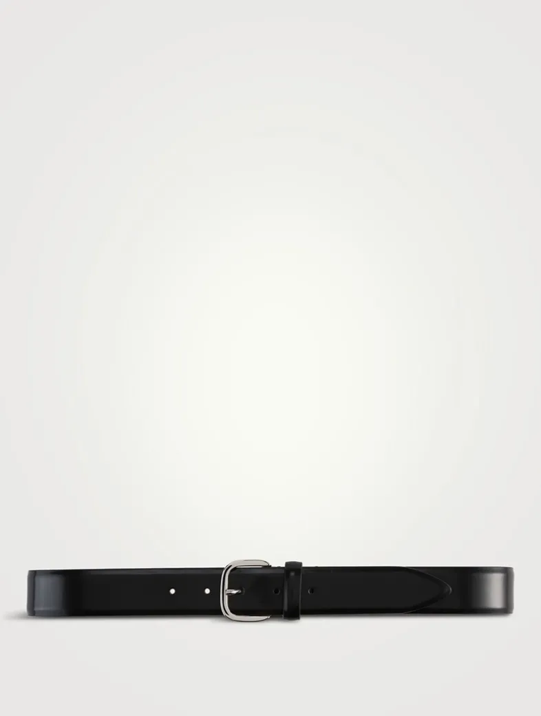 Designed with clean lines, this belt is handcrafted in Italy from semi-gloss leather and features an understated buckle. The 1.5-inch width is ideal for wearing through all sizes of belt loops, ensuring a seamless and stylish fit. The leather is sourced from Italy and certified by the Leather Working Group (LWG).
