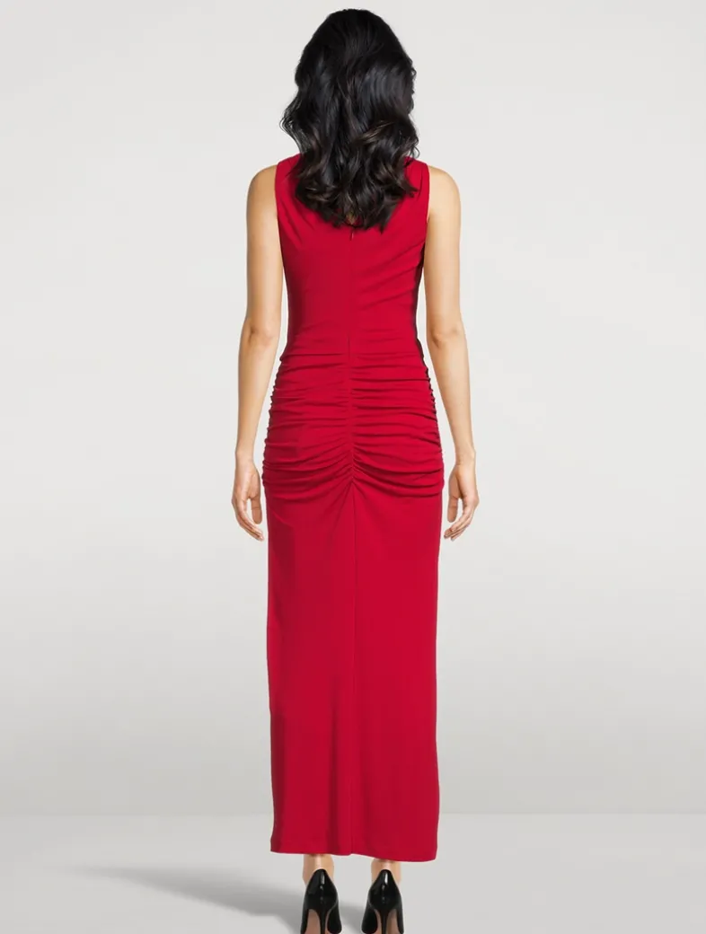 Crafted from a silky stretch jersey, this dress mixes comfort and elegance. It has a plunging neckline with a knotted detail at the bust and soft ruching at the hips.