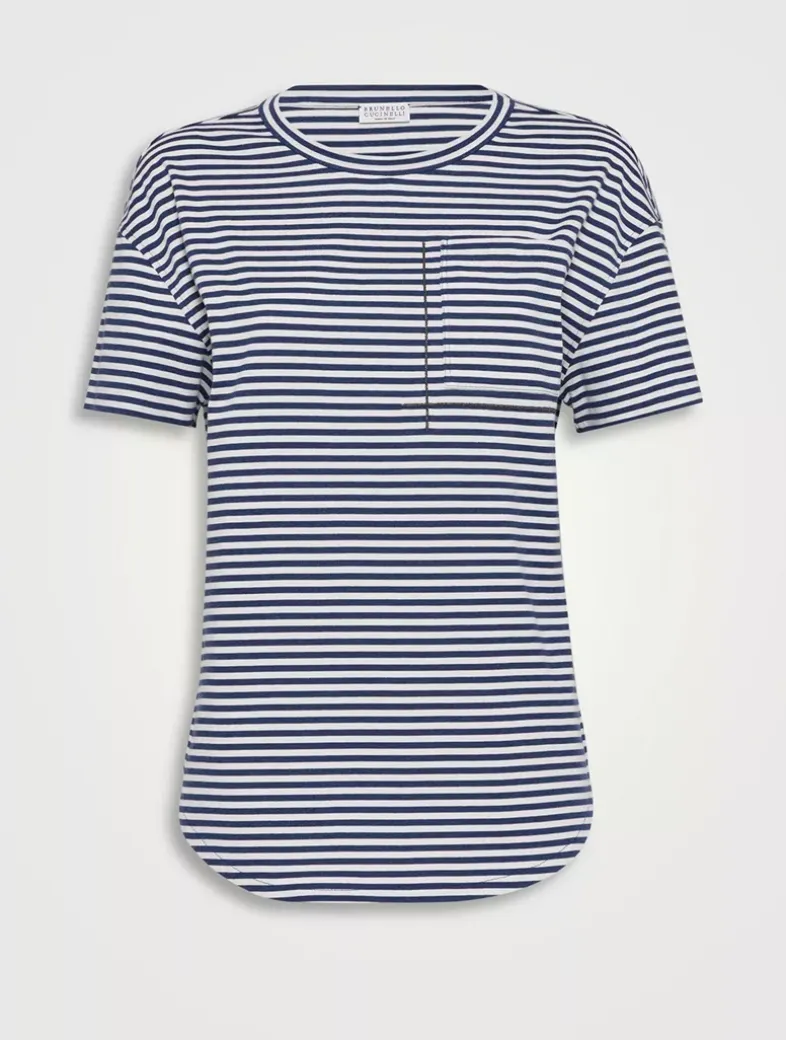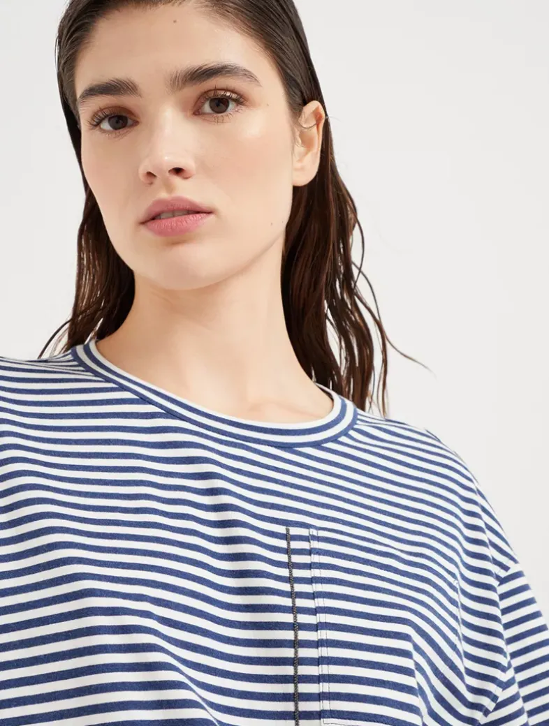 Cotton striped jersey T-shirt with shiny pocket detail