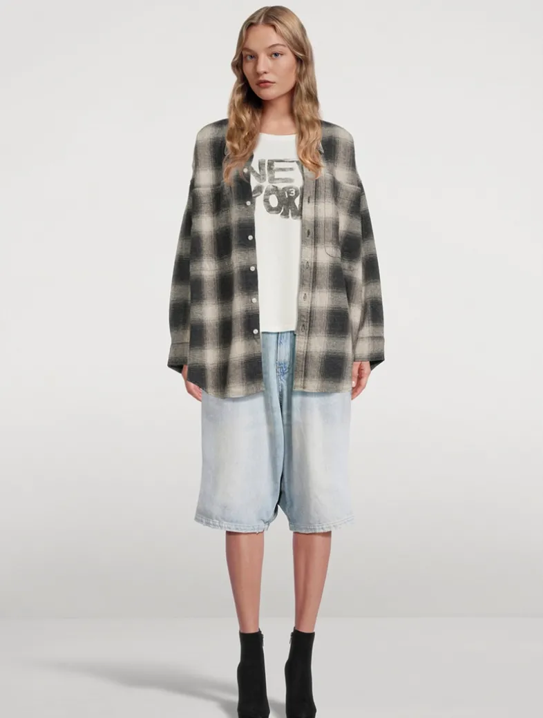 Cut to a relaxed silhouette, these wide-leg jeans have a dropped crotch and a borrowed-from-the-boys look. They are crafted from 100% cotton denim with pleated accents at the front, multiple pockets, and utilitarian details.
