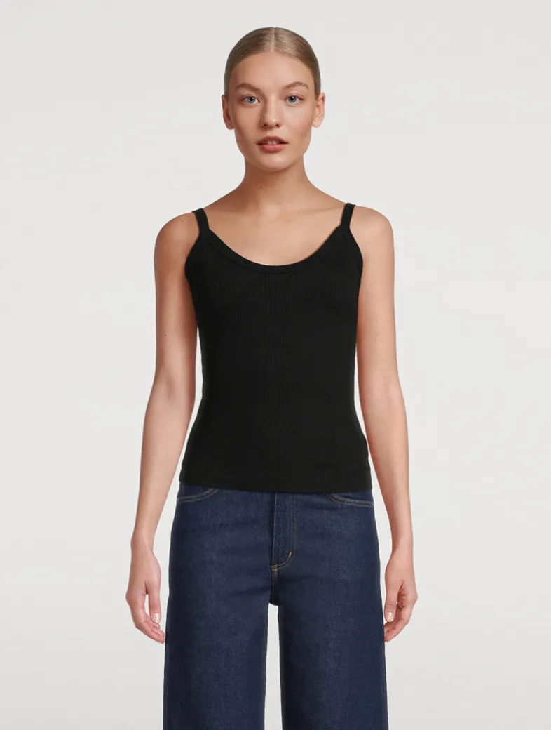 This essential tank is crafted from an organic cotton blend with a delicate ribbed finish and slim shoulder straps.