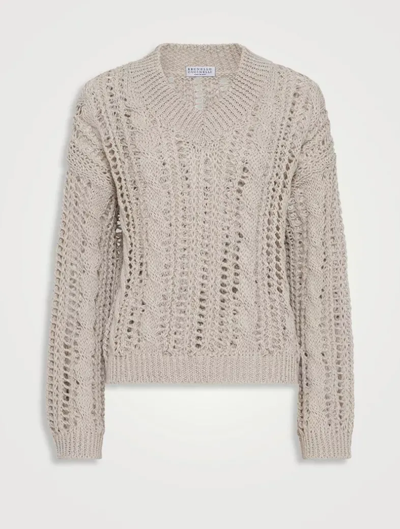 Jute and cotton cable & mesh sweater